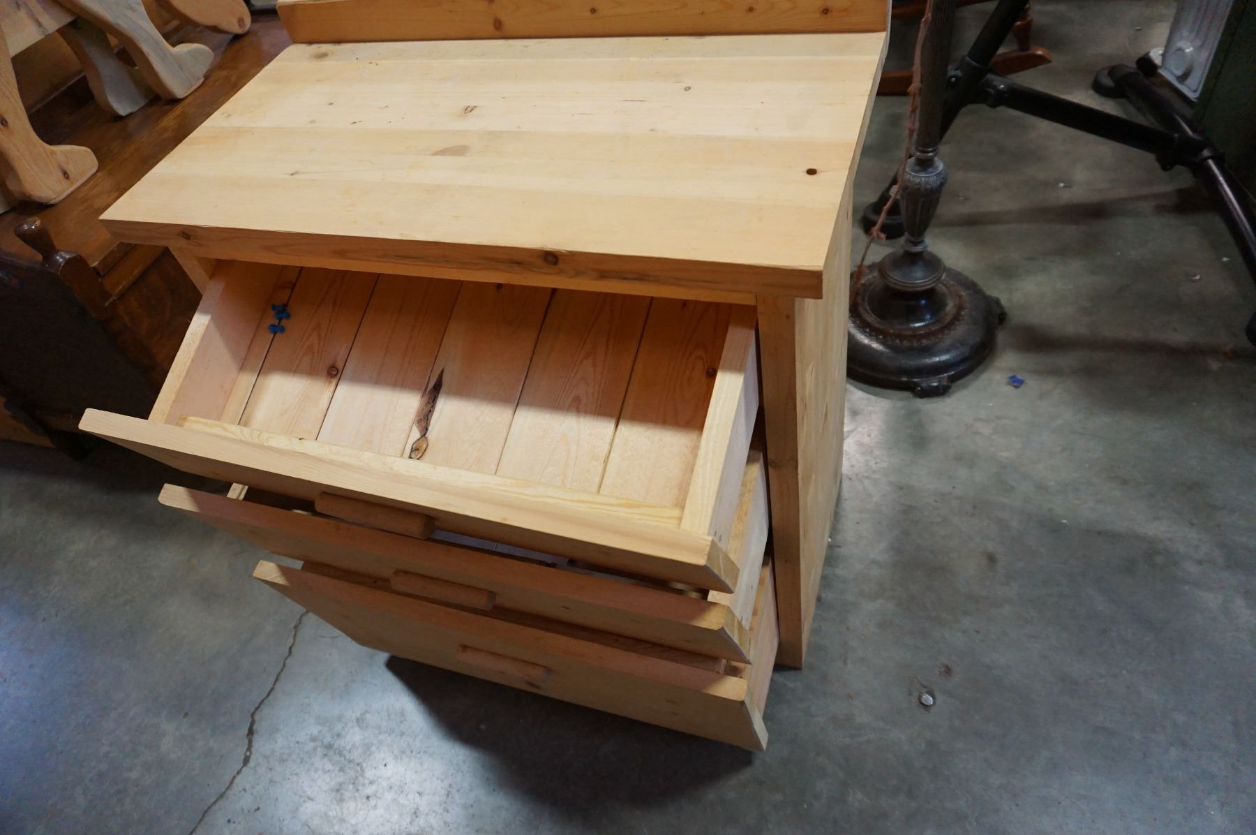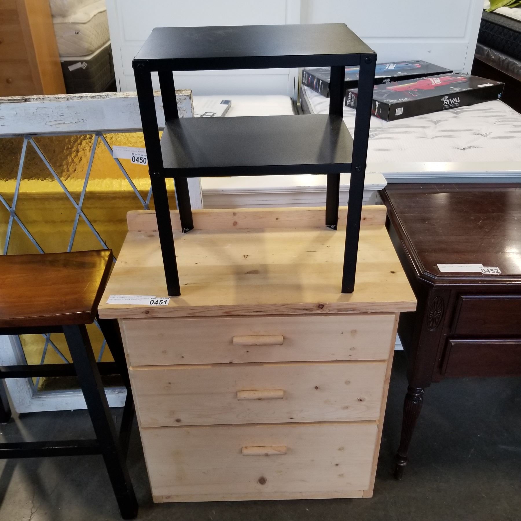PINE 3 DRAWER CHEST OF DRAWERS AND METAL 2 TIER ENDTABLE