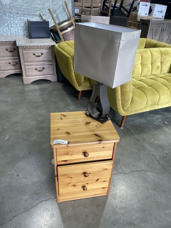 PINE 3 DRAWER ENDTABLE AND TABLE LAMP