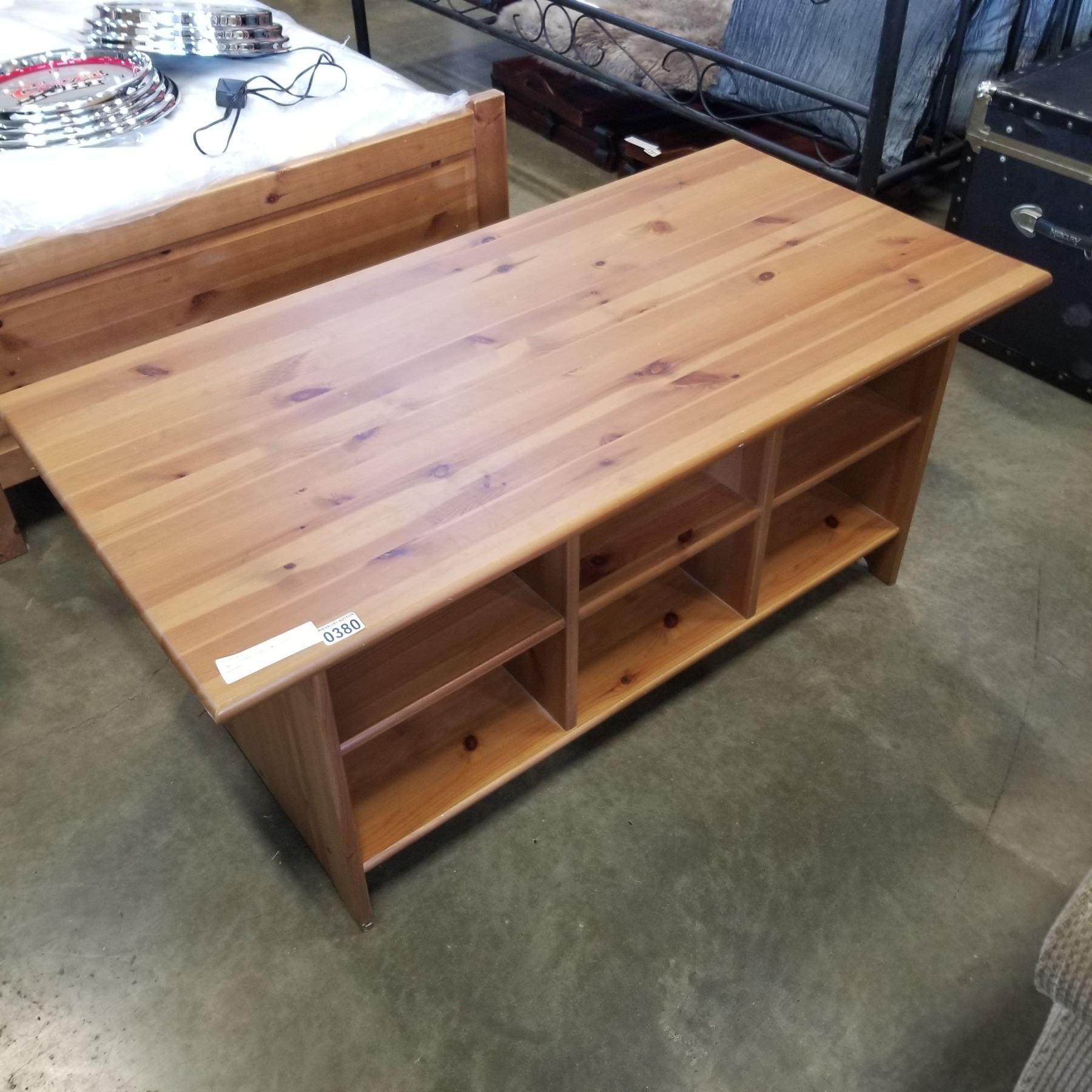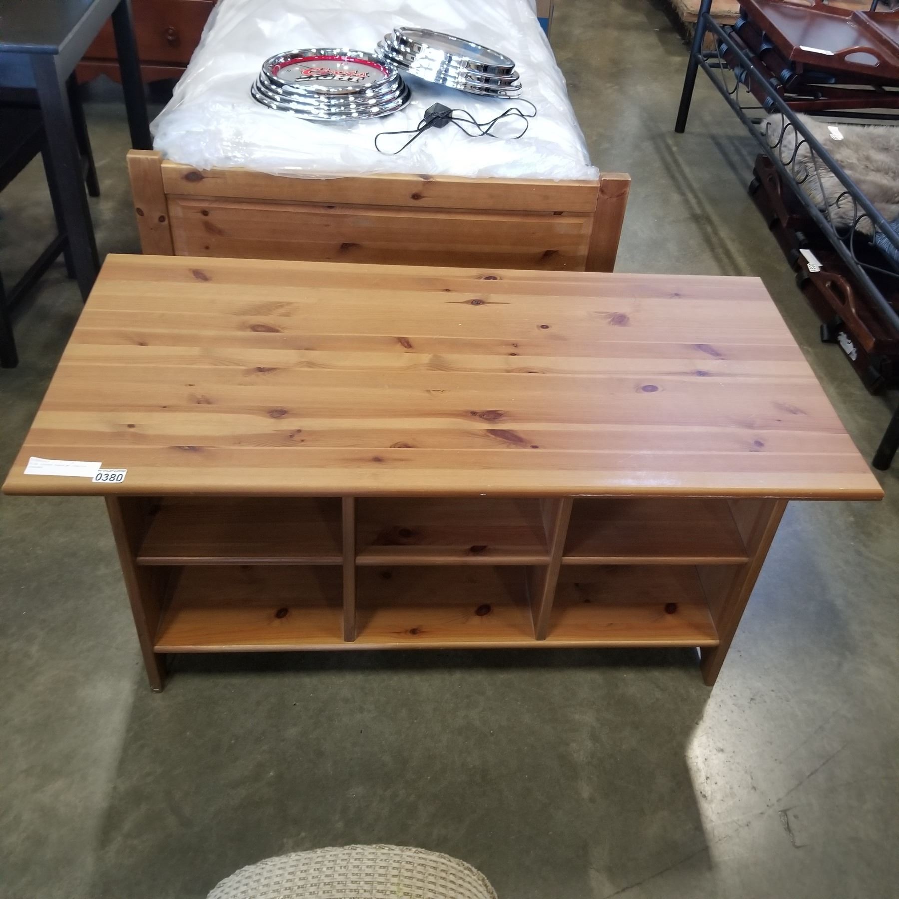 PINE COFFEE TABLE W/ CUBICLE SHELVES
