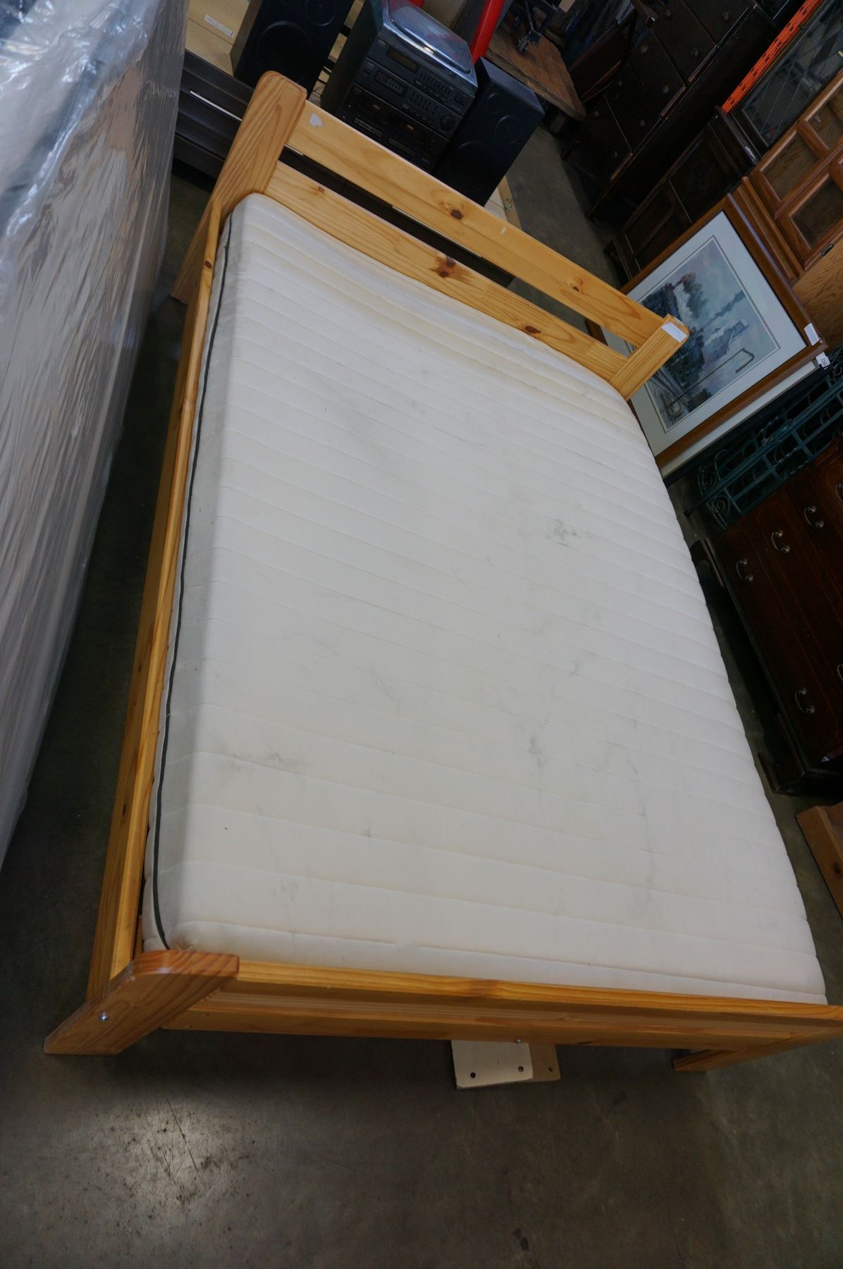 PINE DOUBLE SIZE BEDFRAME WITH IKEA MATTRESS