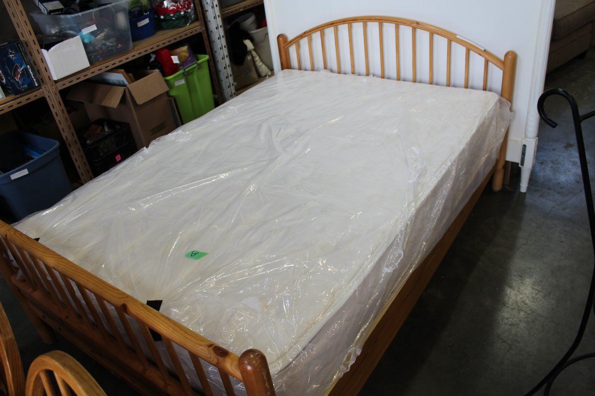 PINE DOUBLE SIZE BEDFRAME WITH SEALY MATTRESS