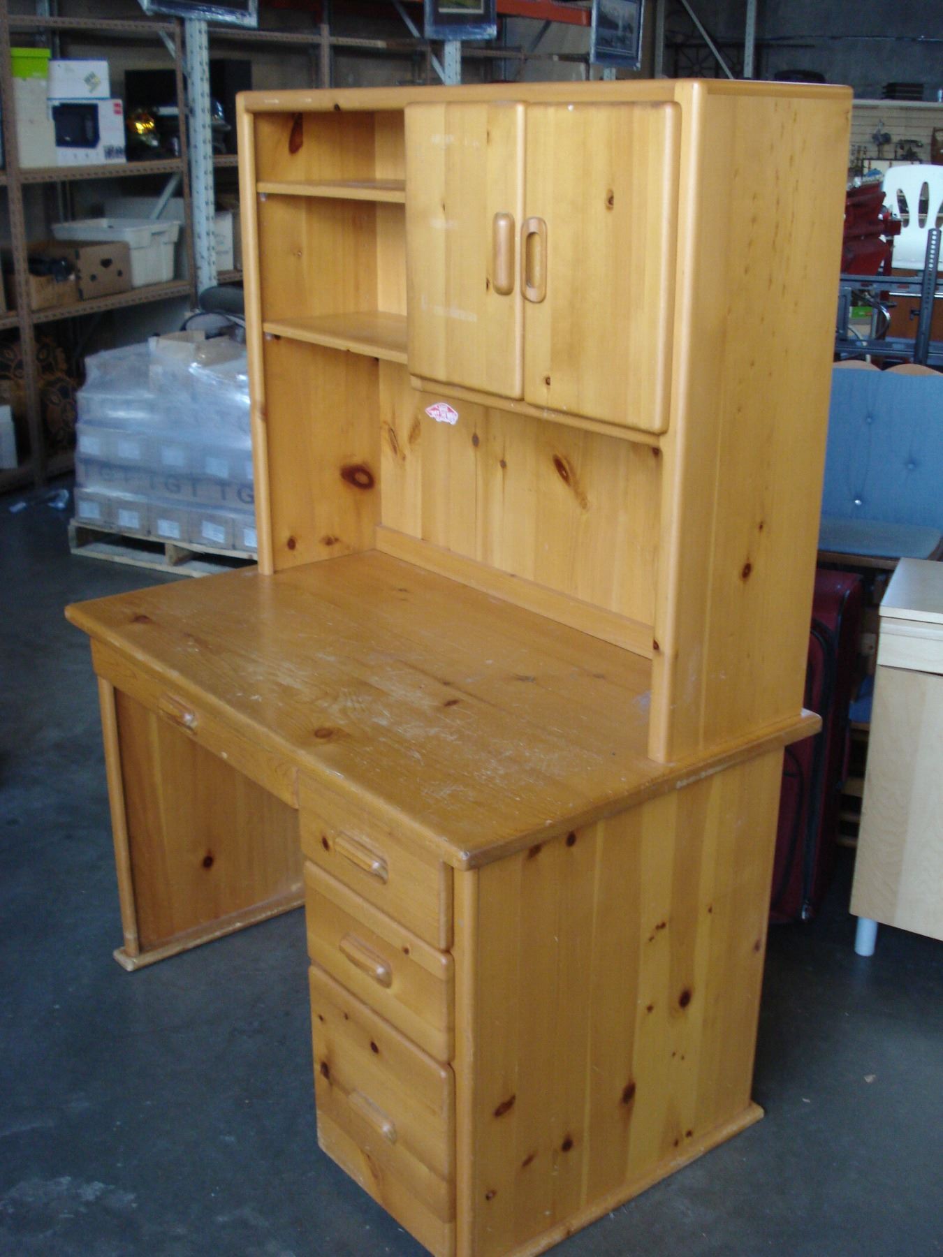 PINE SINGLE PEDESTLE DESK WITH HUTCH