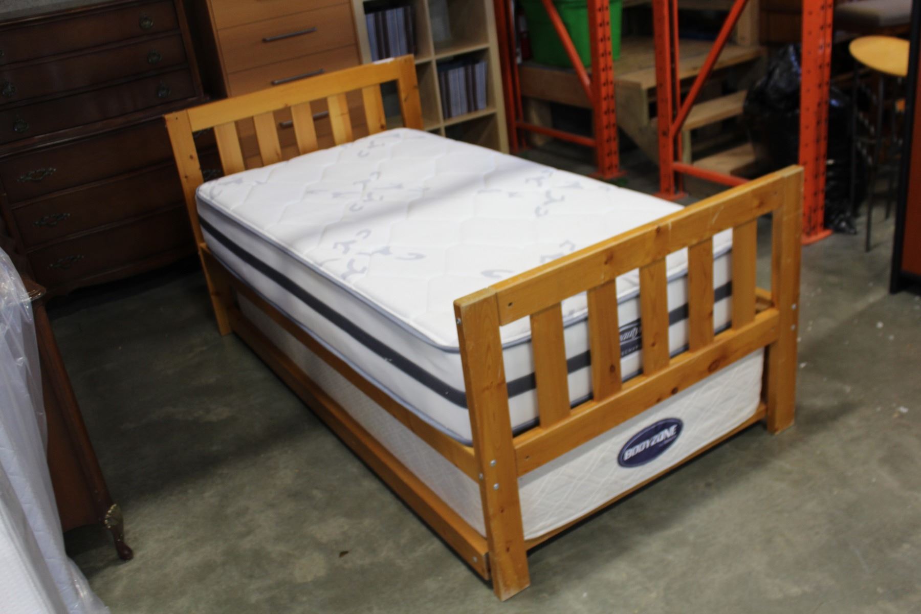 PINE TRUNDLE BED FRAME WITH MATTRESS