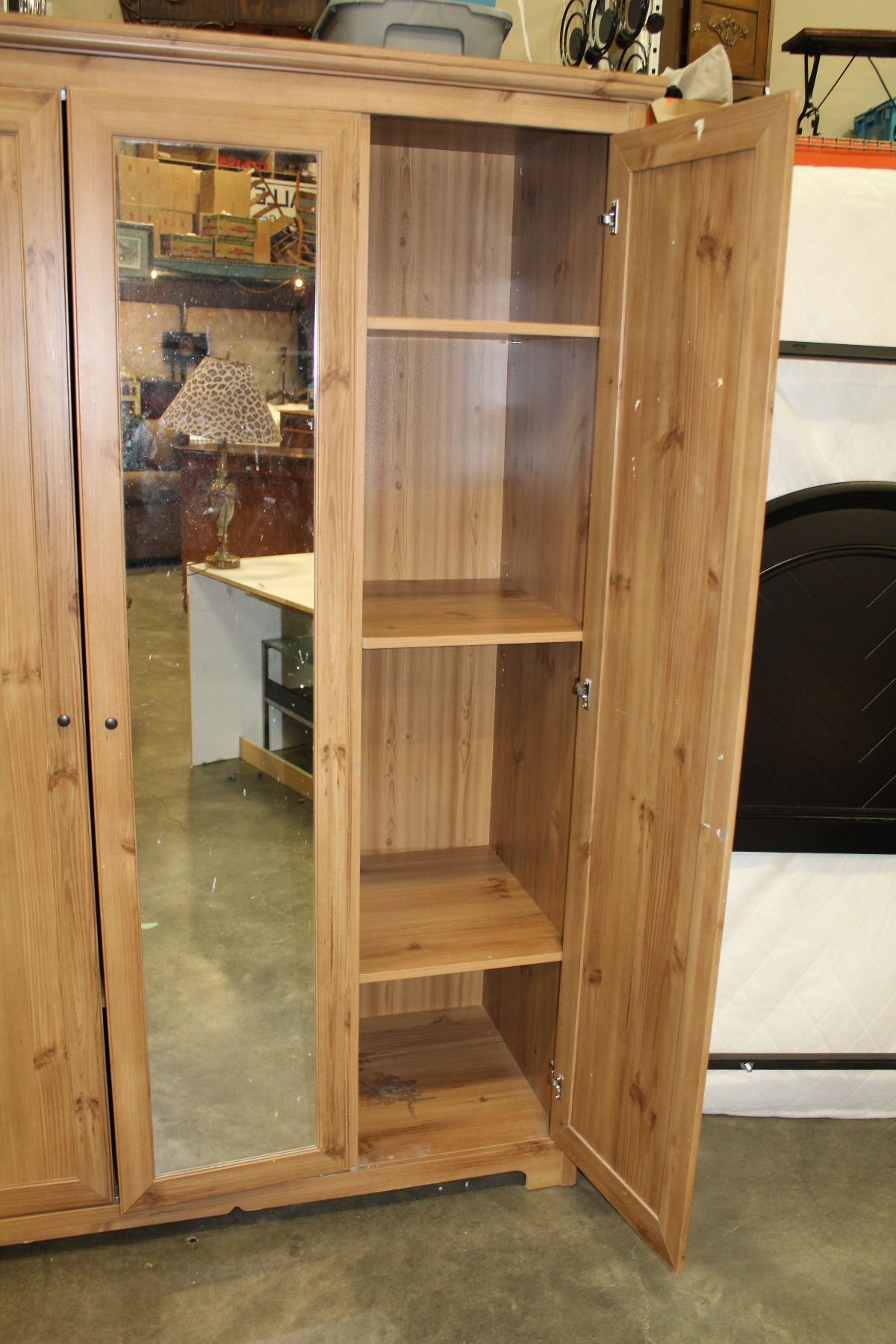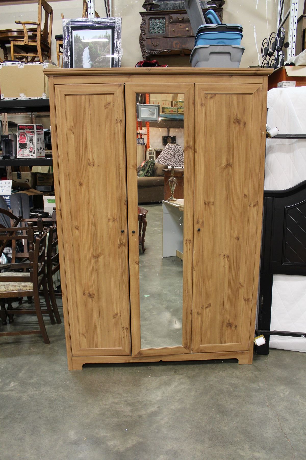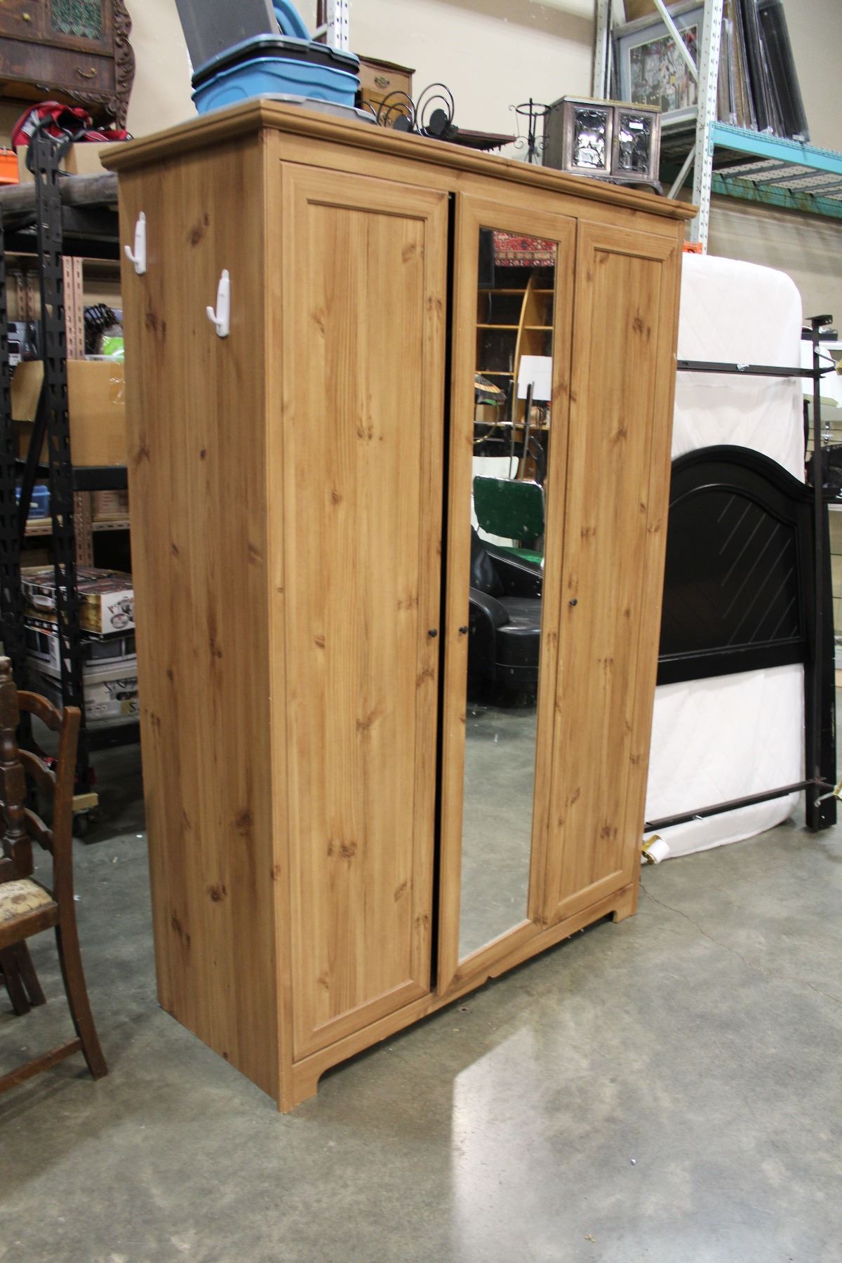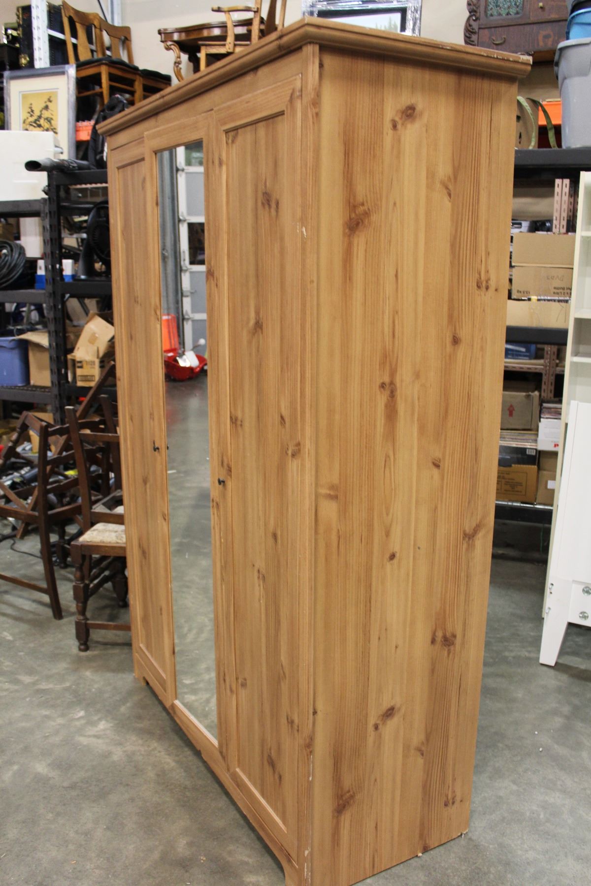 PINE WARDROBE WITH MIRROR DOOR ABOUT 6 FOOT TALL
