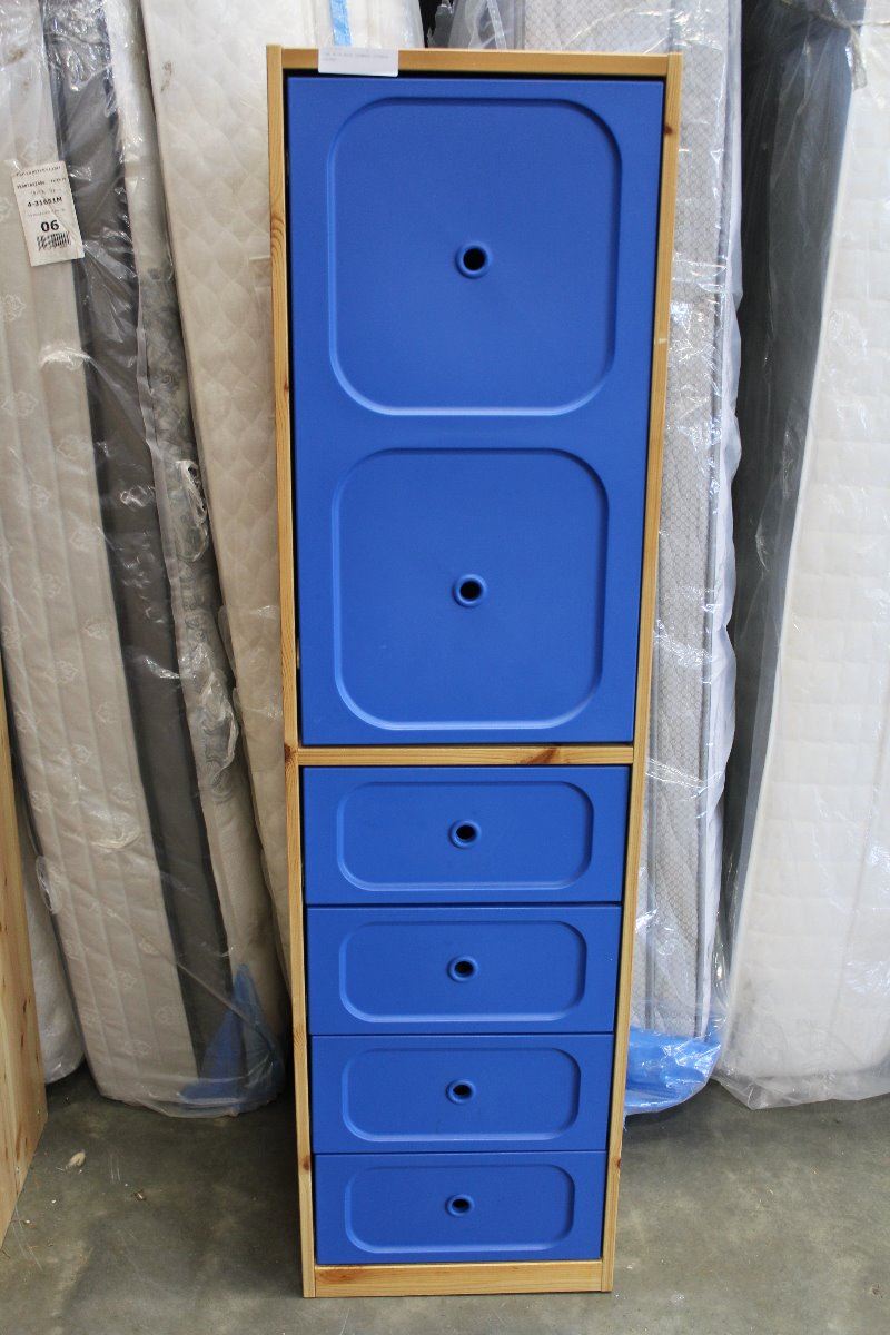 PINE WITH BLUE DRAWERS STORAGE CABINET