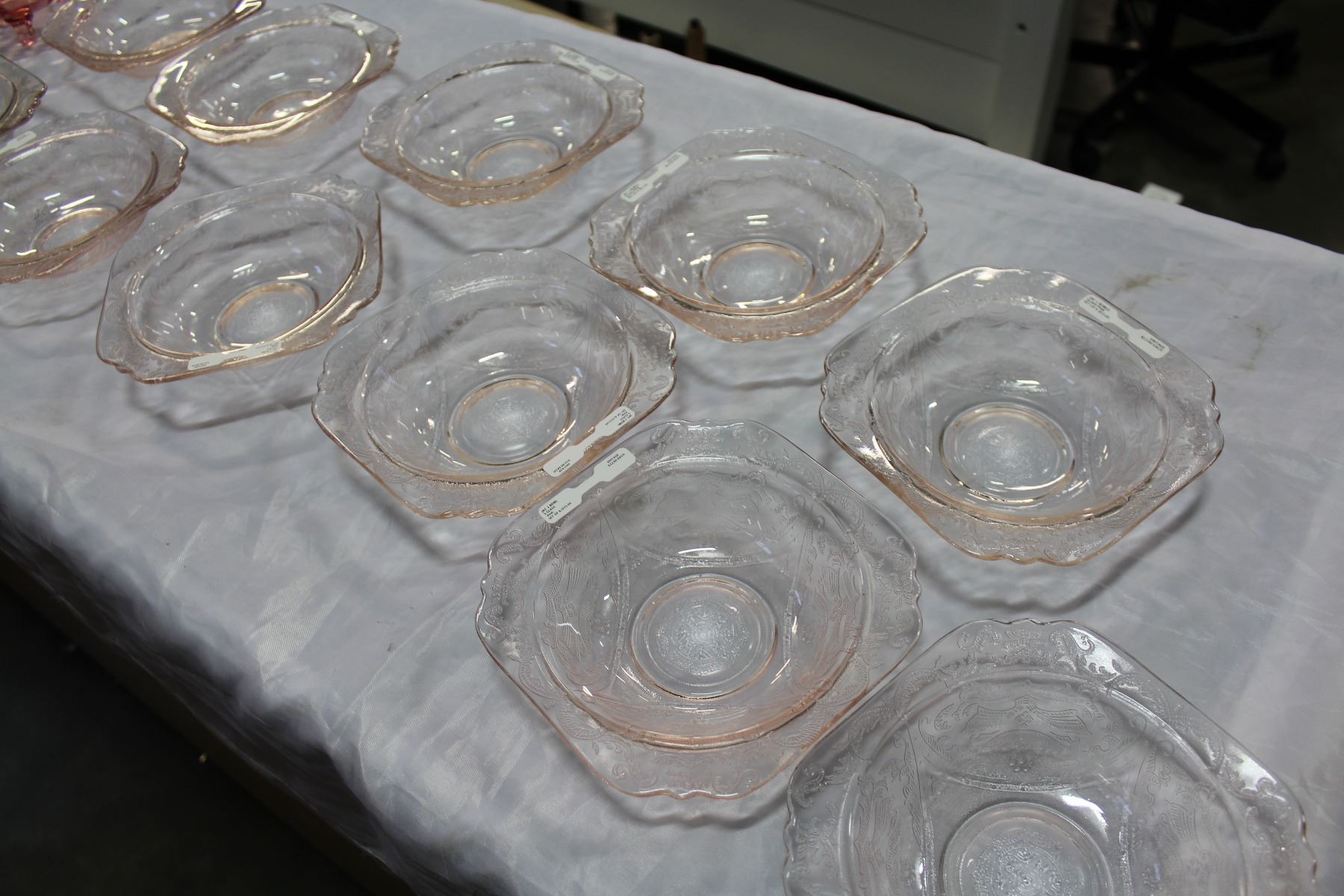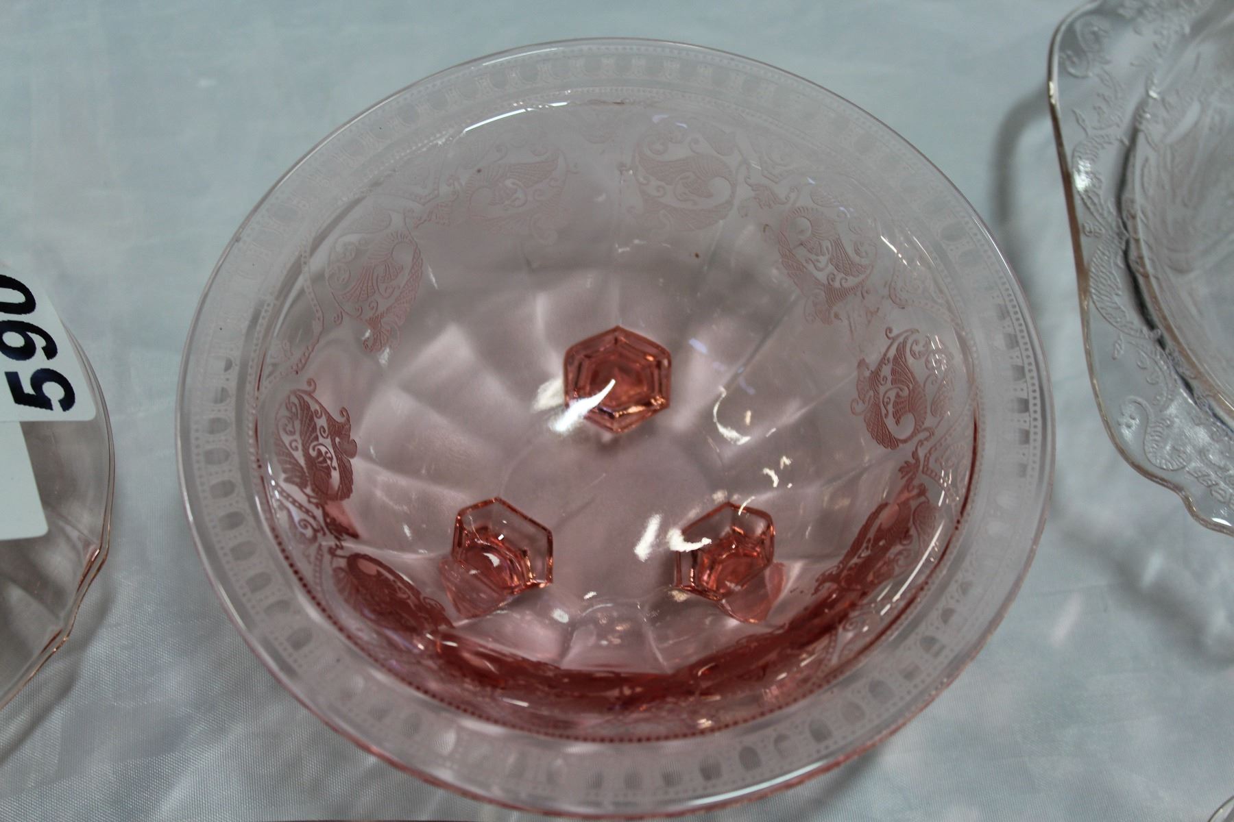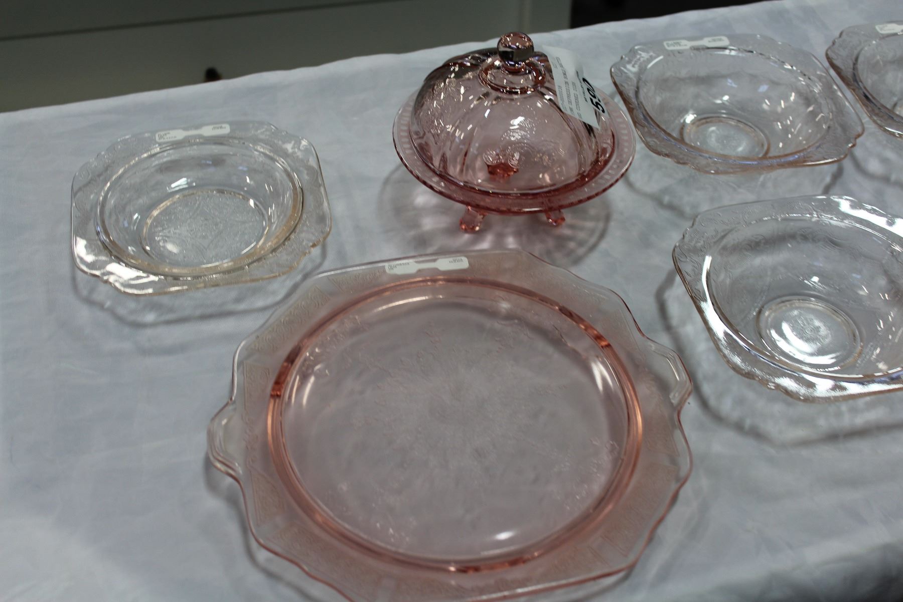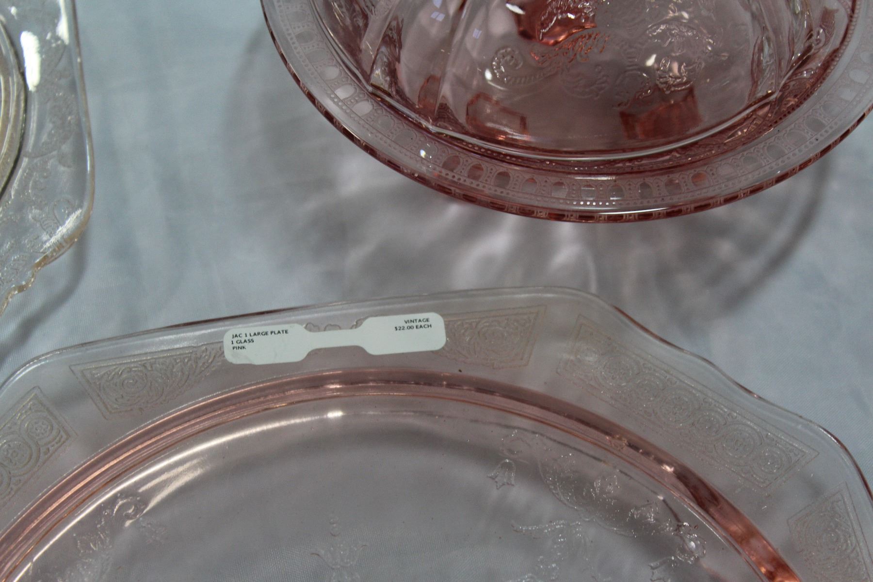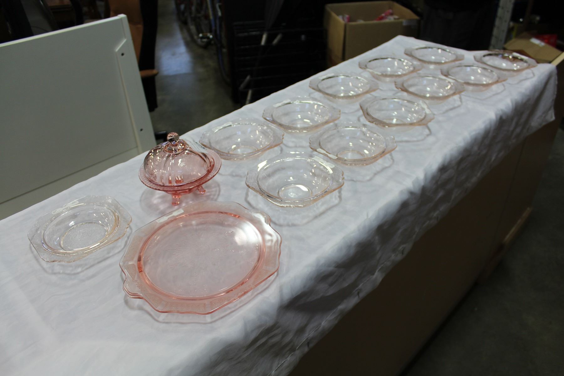 PINK DEPRESSION BOWLS PLATTER AND COVERED DISH