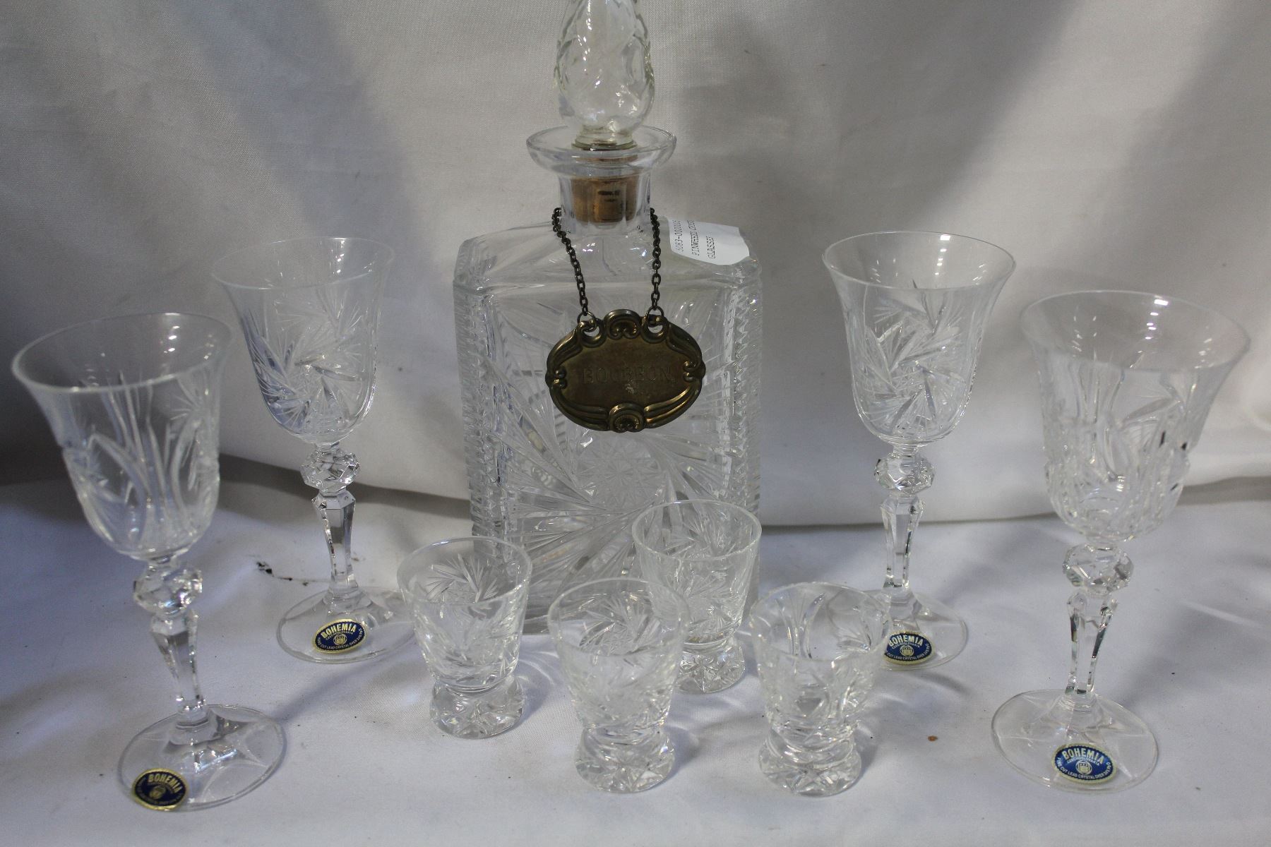 PINWHEEL CRYSTAL DECANTER AND GLASSES