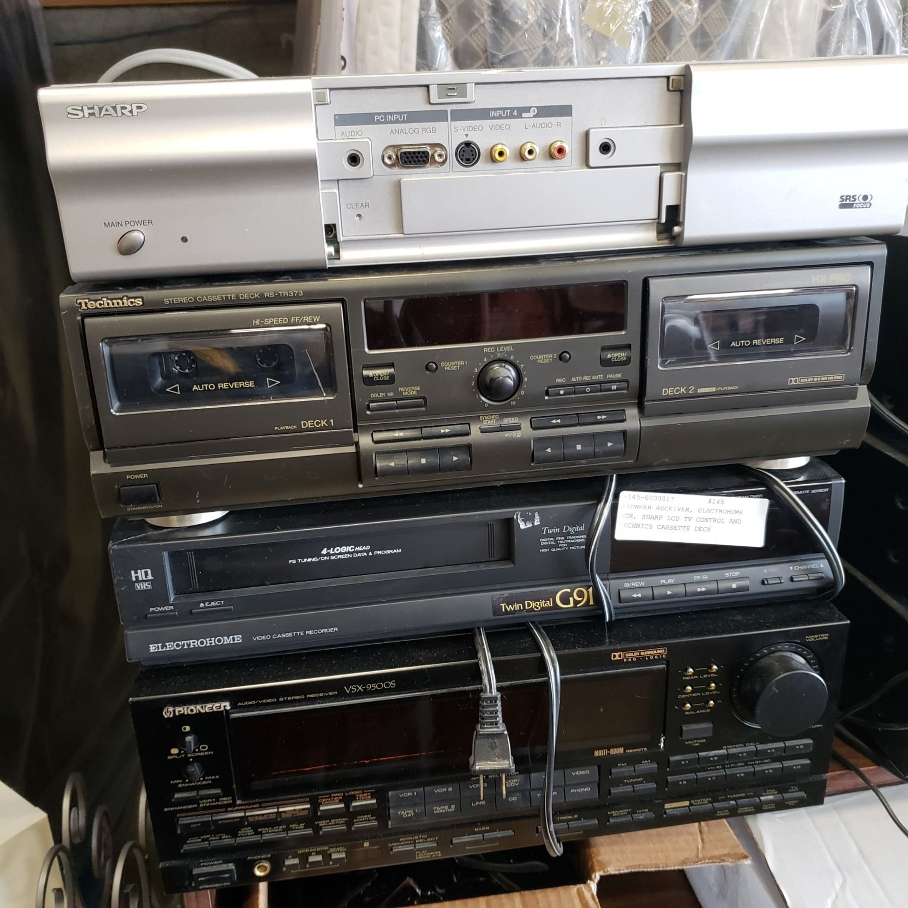 PIONEER RECEIVER, ELECTROHOME VCR, SHARP LCD TV CONTROL AND TECHNICS CASSETTE DECK
