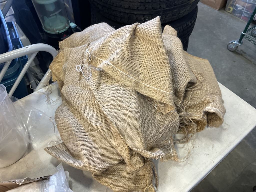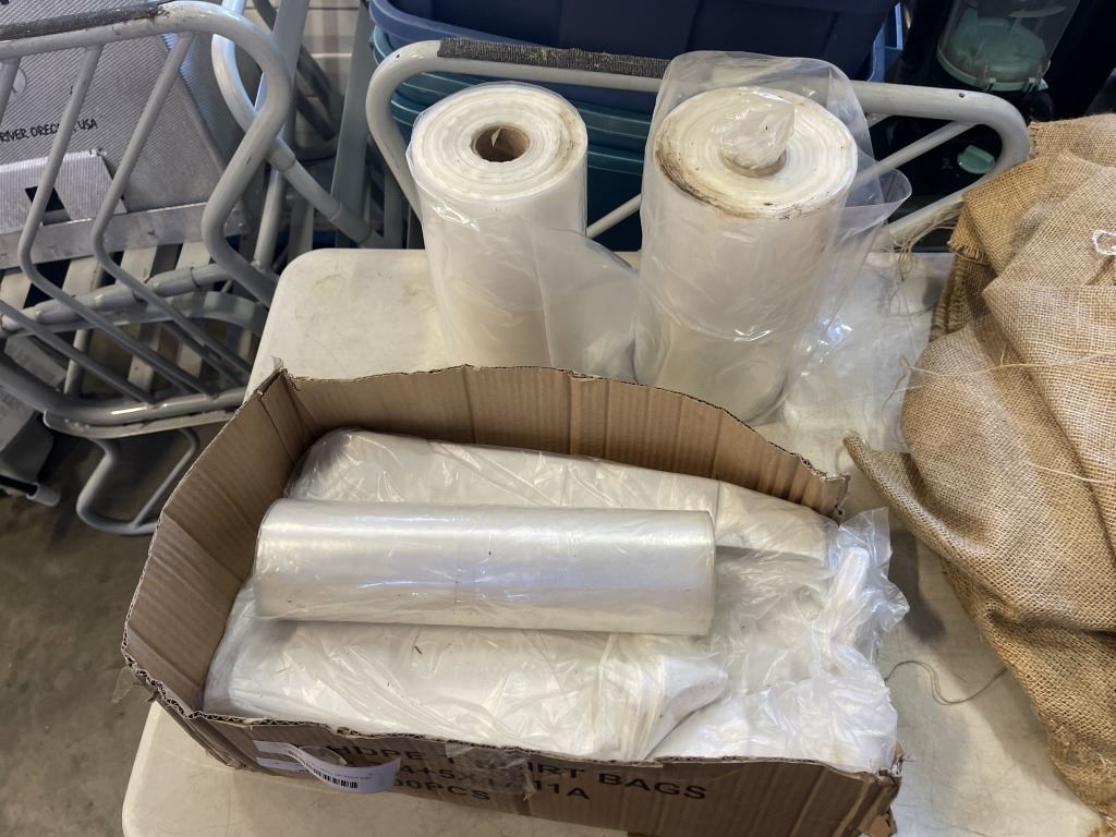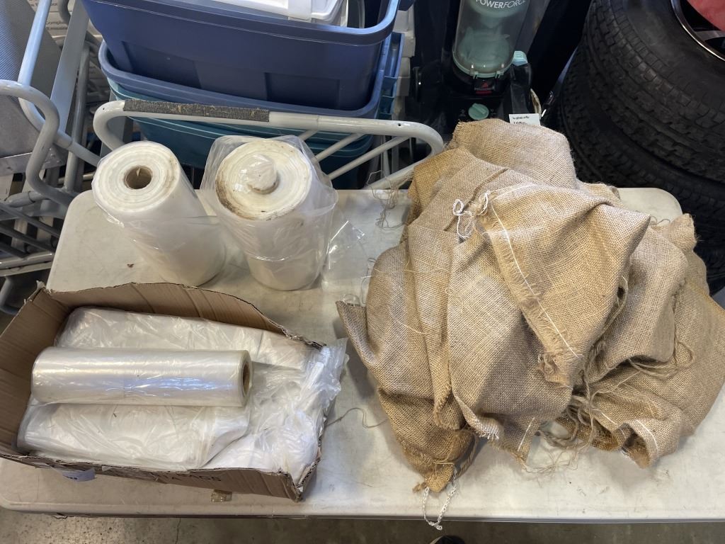 PLASTIC BAGS, SMALL ROLL OF POLY AND BURLAP SACKS