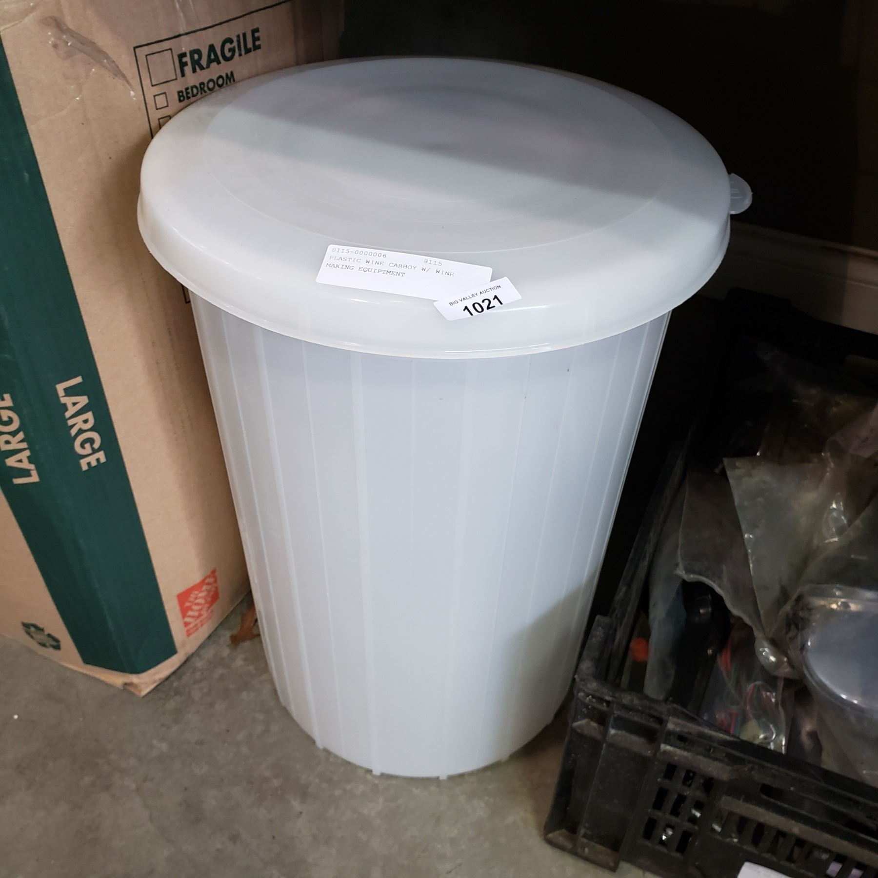 PLASTIC WINE CARBOY W/ WINE MAKING EQUIPTMENT