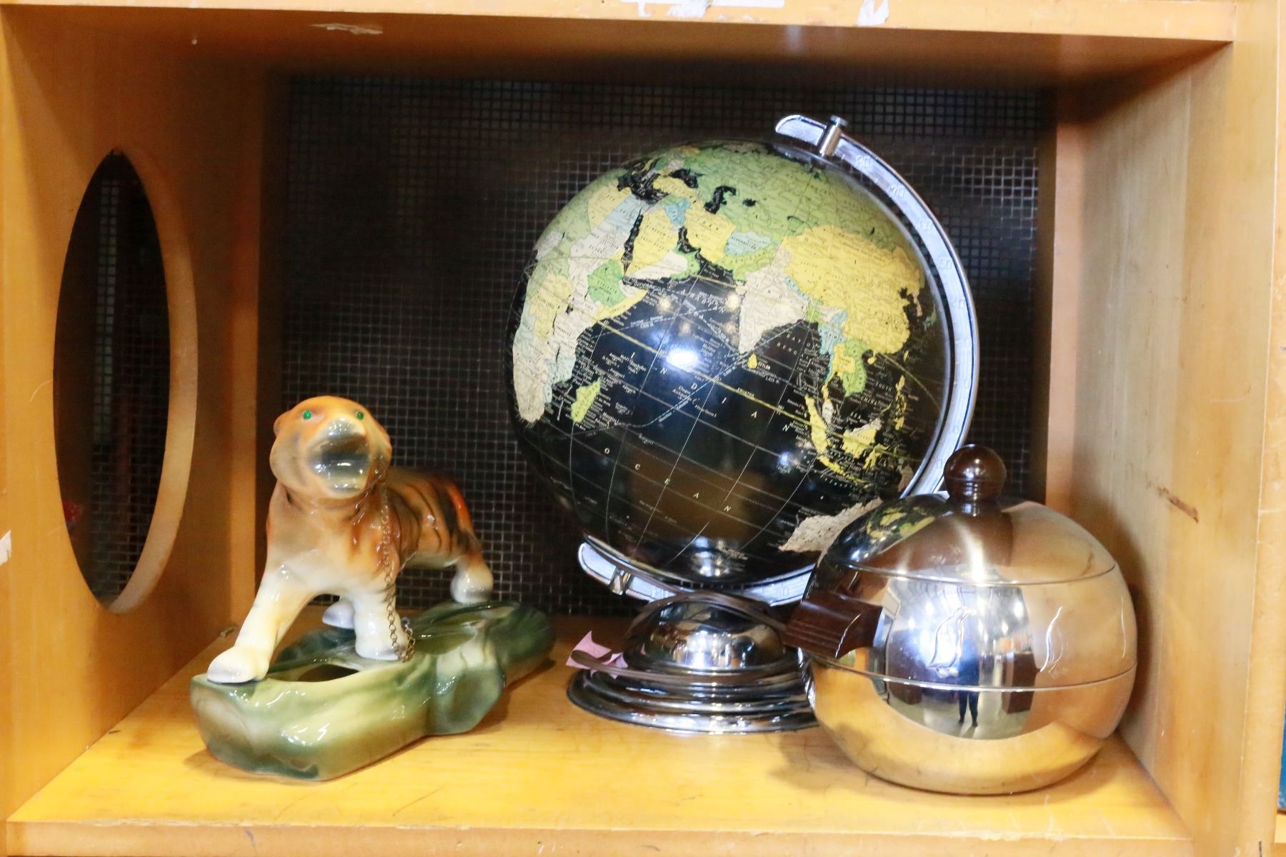 PLUG-IN GLASS LIGHT-UP GLOBE, CERAMIC TIGER + METAL PENGUIN ICE BUCKET