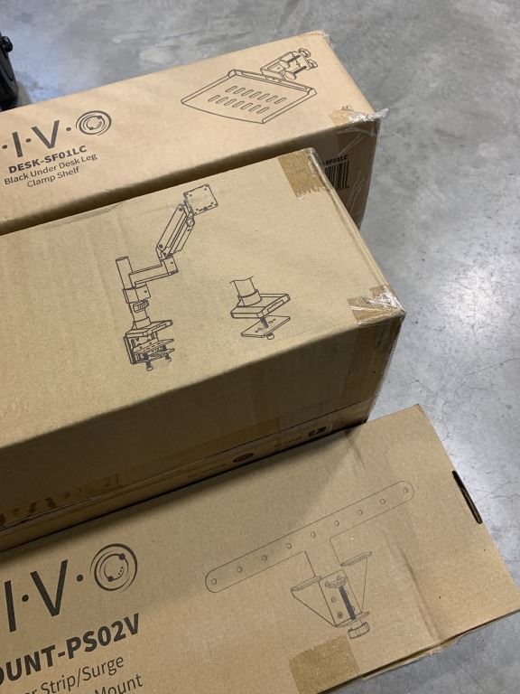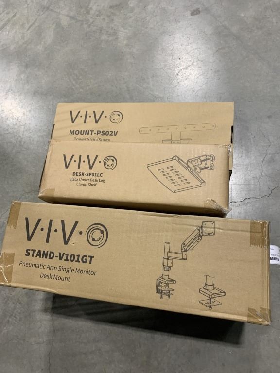 PNEUMATIC ARM SINGLE MONITOR DESK MOUNT, BLACK UNDER DESK LEG CLAMP SHELF AND POWER STRIP/SURGE PROTECTOR VESA MOUNT