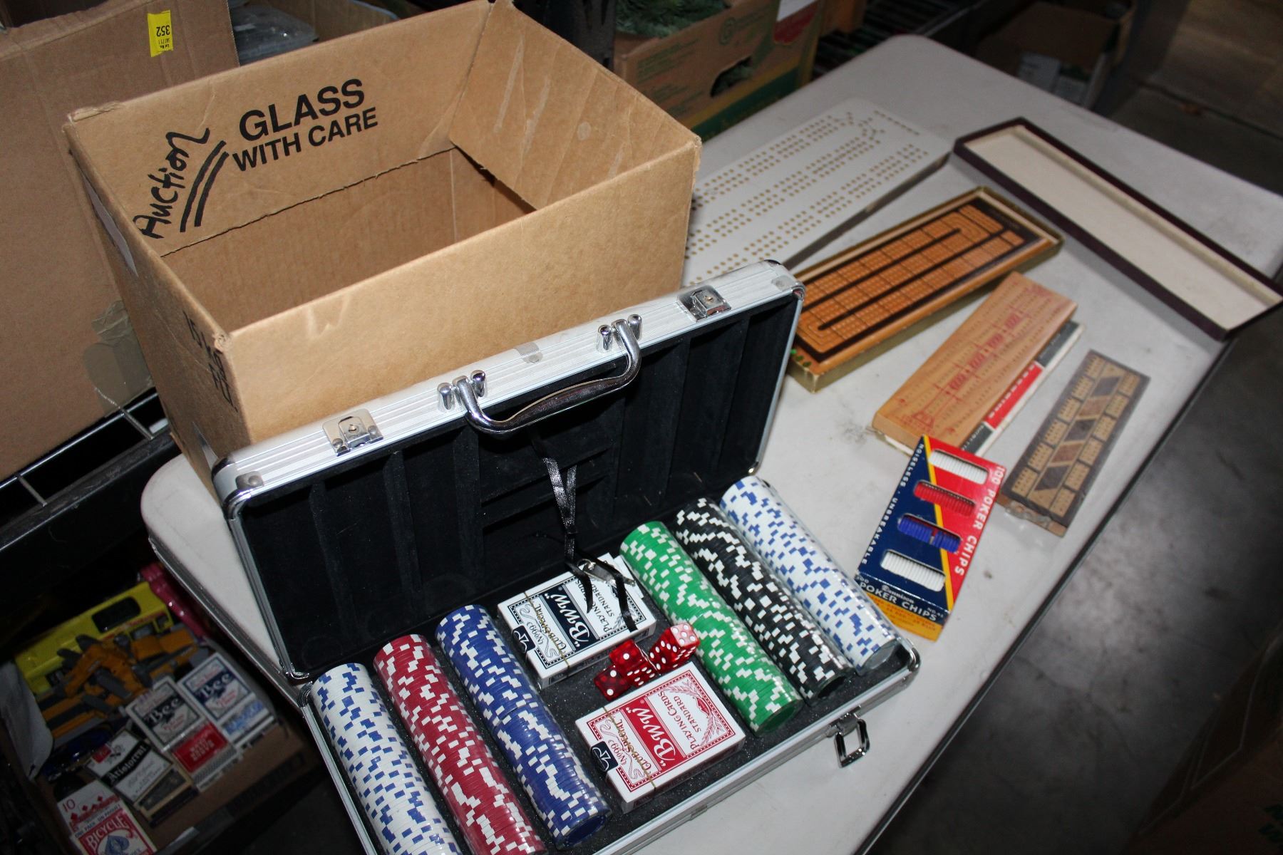 POKER SET AND CRIB BOARD AND CARDS