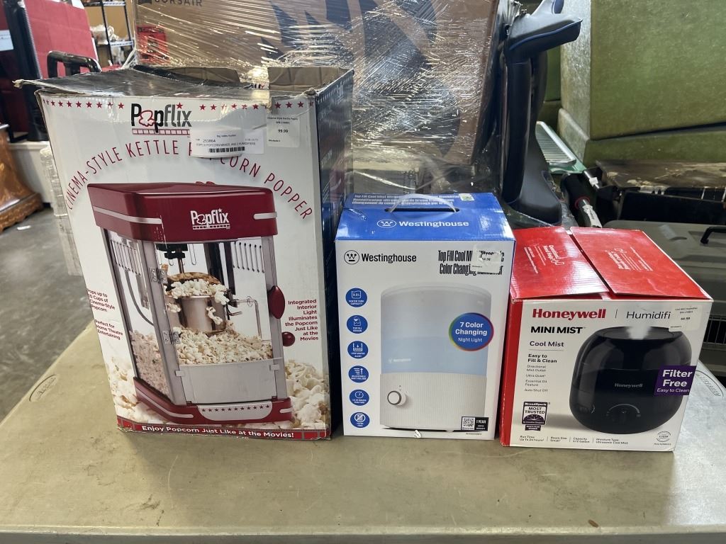 POPFLIX POPCORN MAKER, AND 2 HUMIDIFIERS