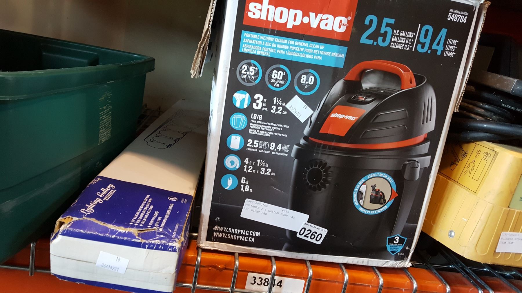 PORTABLE 2.5 GALLON SHOP VAC AND LIGHT BAR