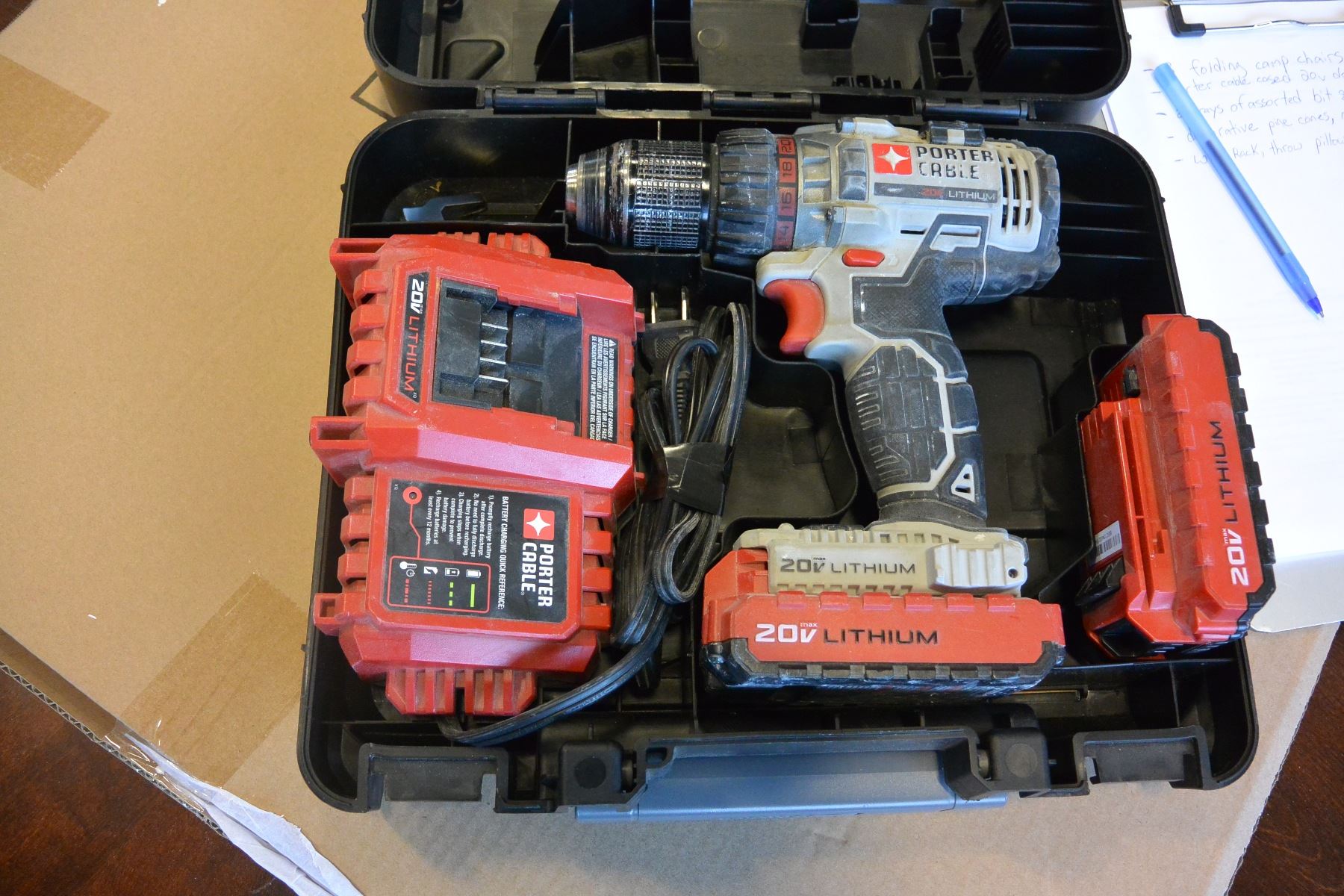 PORTER CABLE CASED 20V DRILL, 2 BATTERIES AND CHARGER