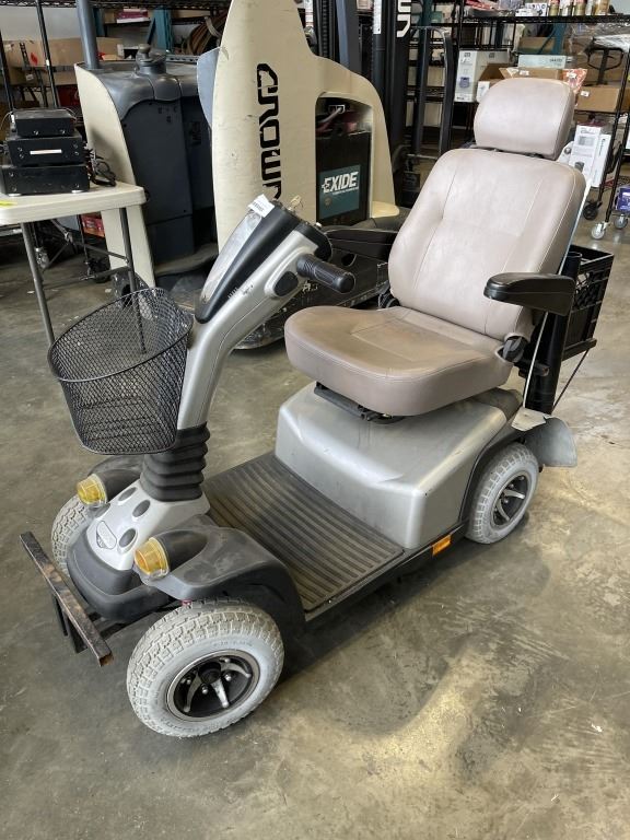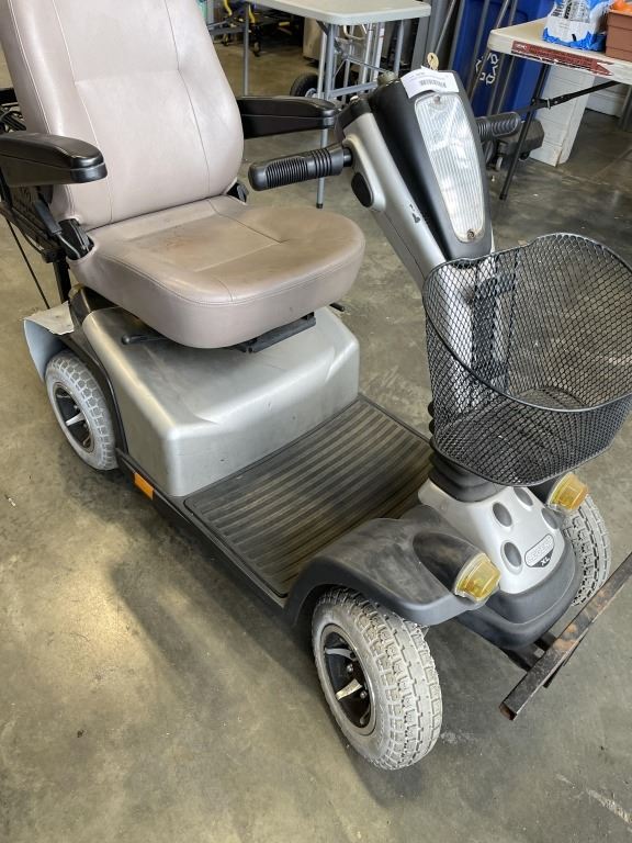 PRIDE LEGEND XL MOBILITY SCOOTER, TURNS ON, BATTERIES ARE TO WEAK TO DRIVE, WITH KEY AND POWER CORD