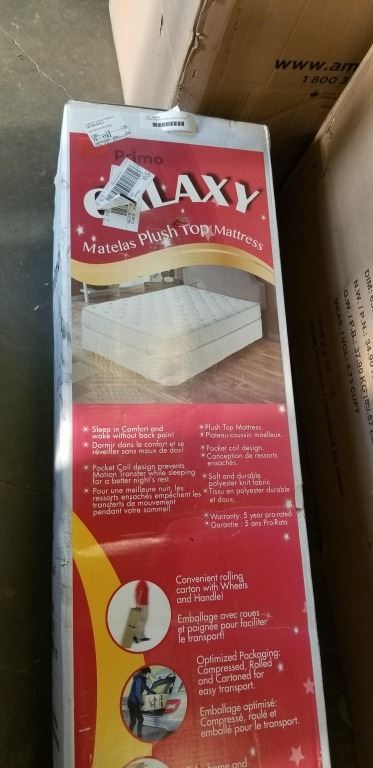 PRIMO INTERNATIONAL SOLAR 9" QUEENSIZE POCKET COIL INNERSPRING PILLOW TOP MATTRESS - RETAIL $327