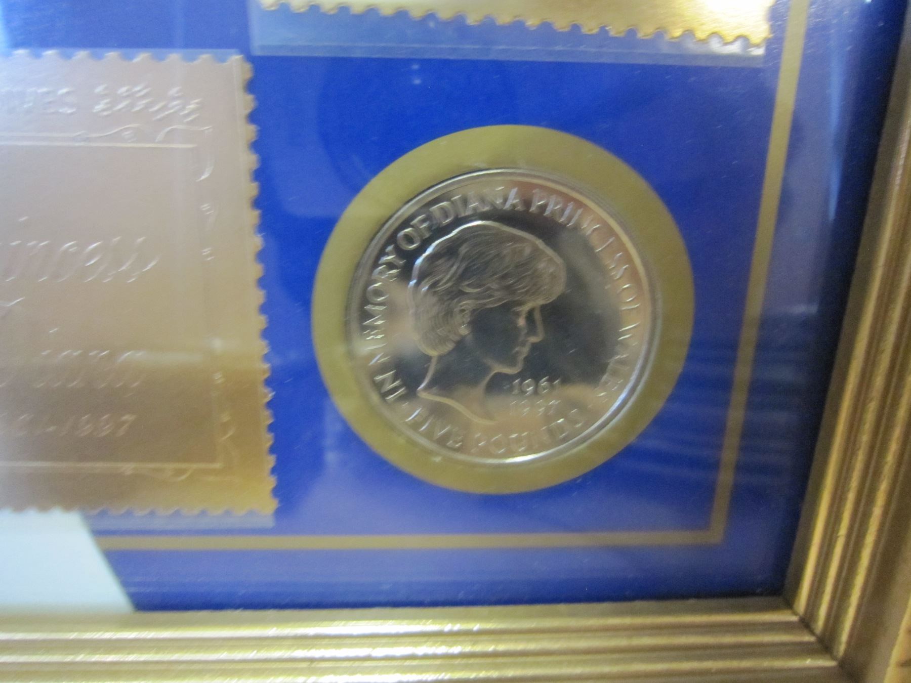 PRINCESS DIANA MEMORIAL PLAQUE 22KT GOLD CARDS AND SILVER COIN