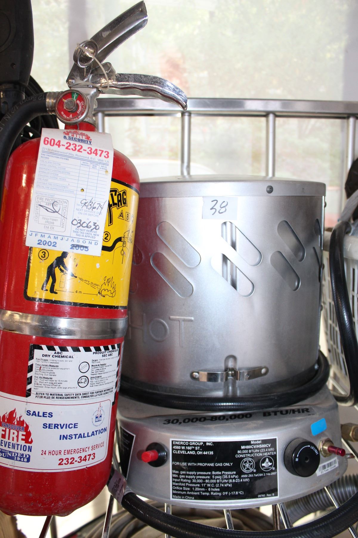 PROPANE 30 TO 80000 BTU SPACE HEATER AND FIRE EXTINGUISHER
