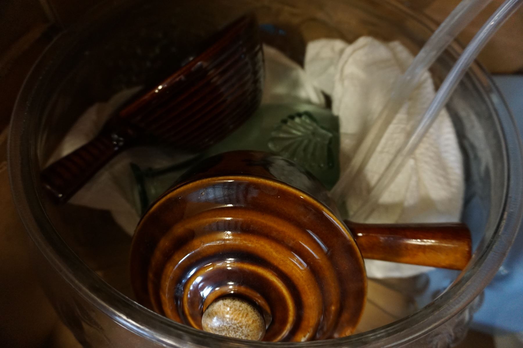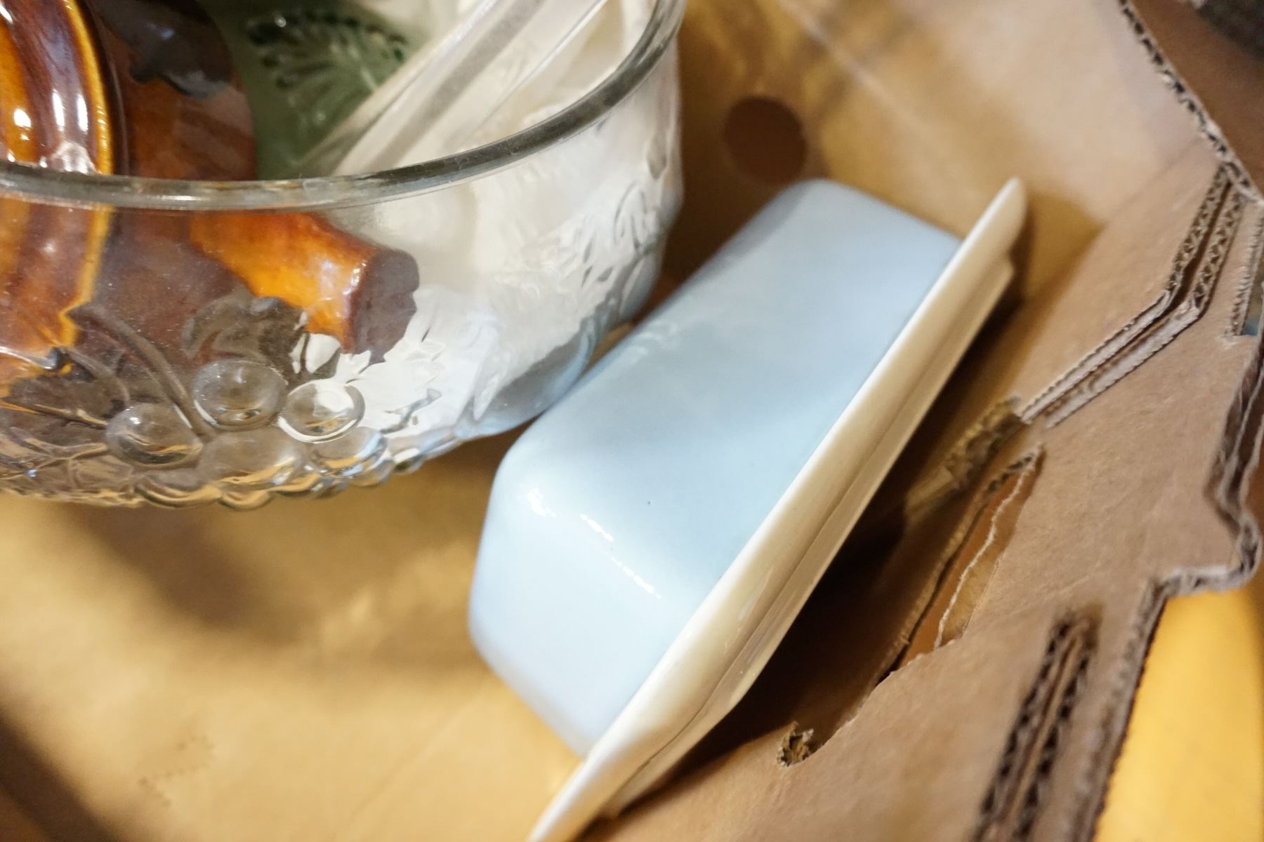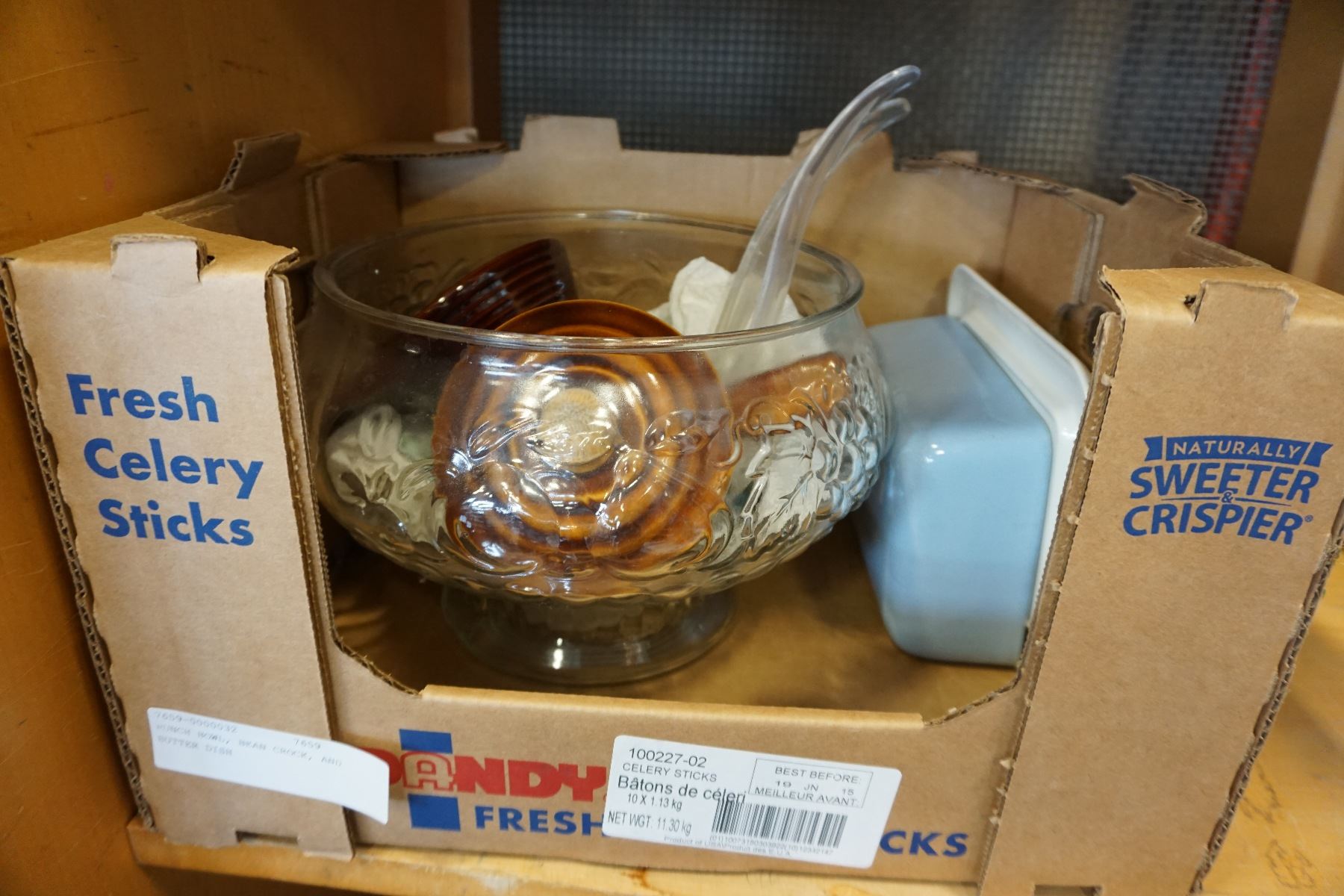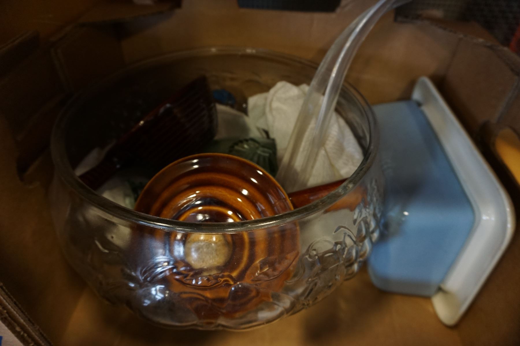 PUNCH BOWL, BEAN CROCK, AND BUTTER DISH