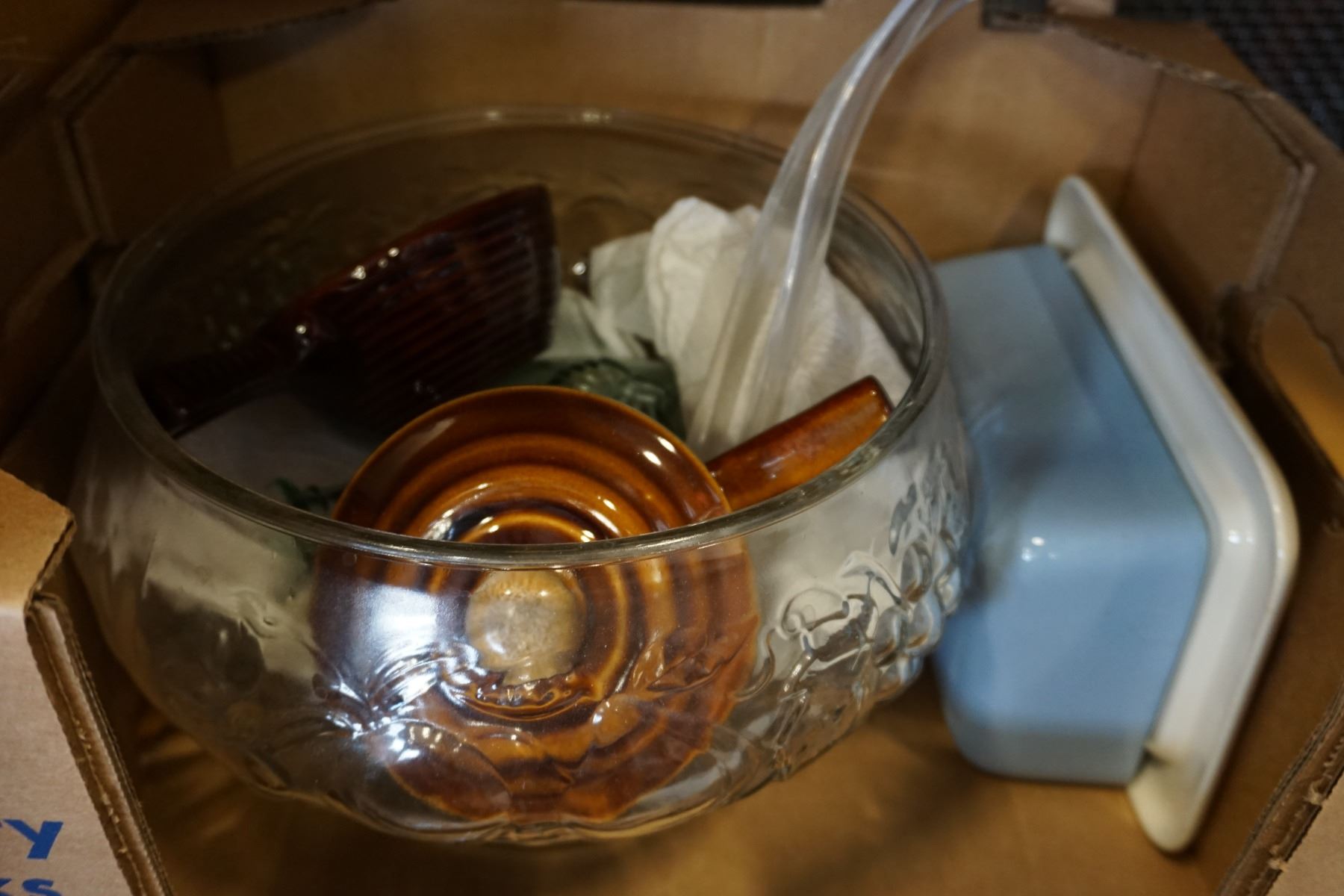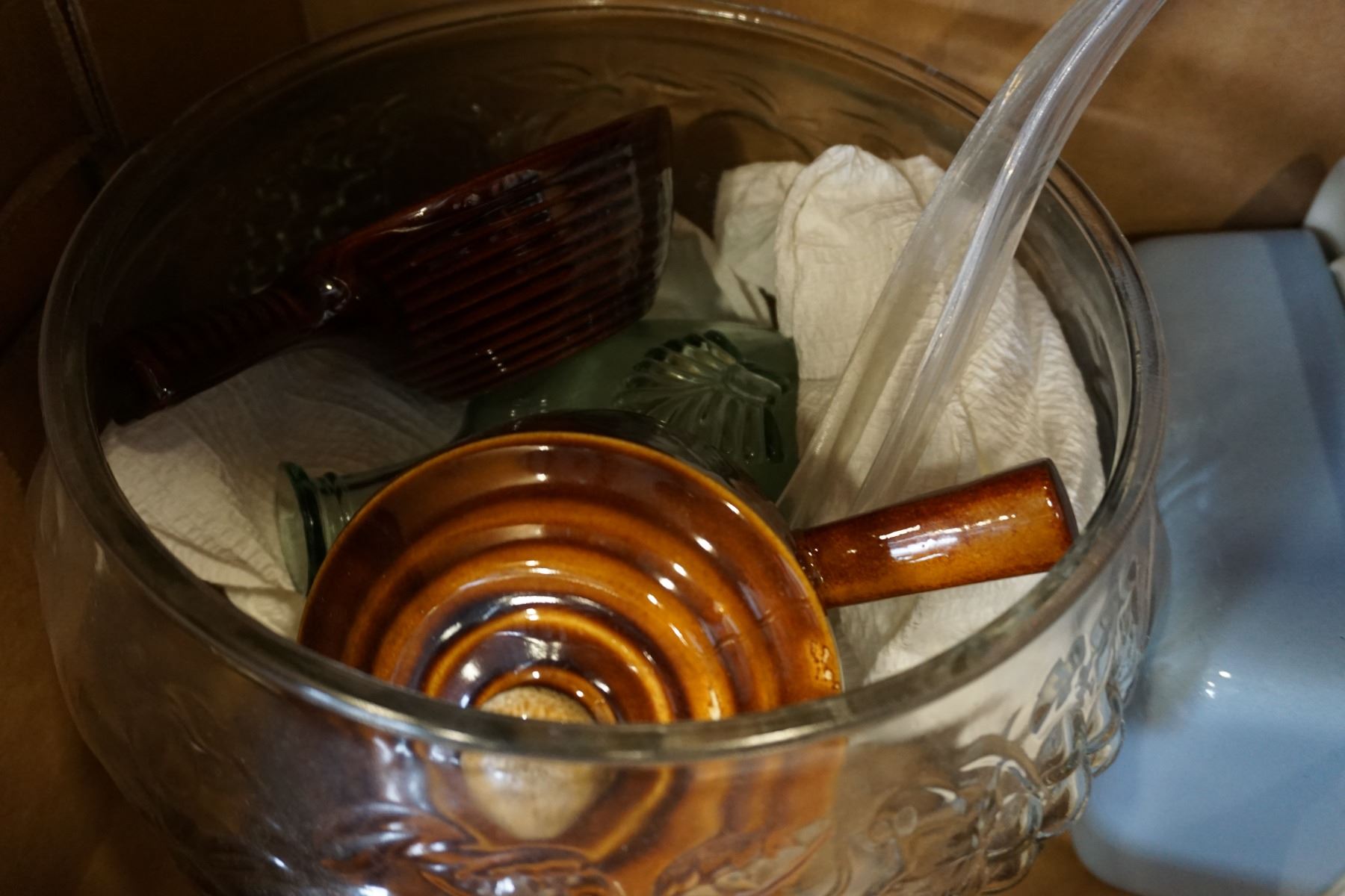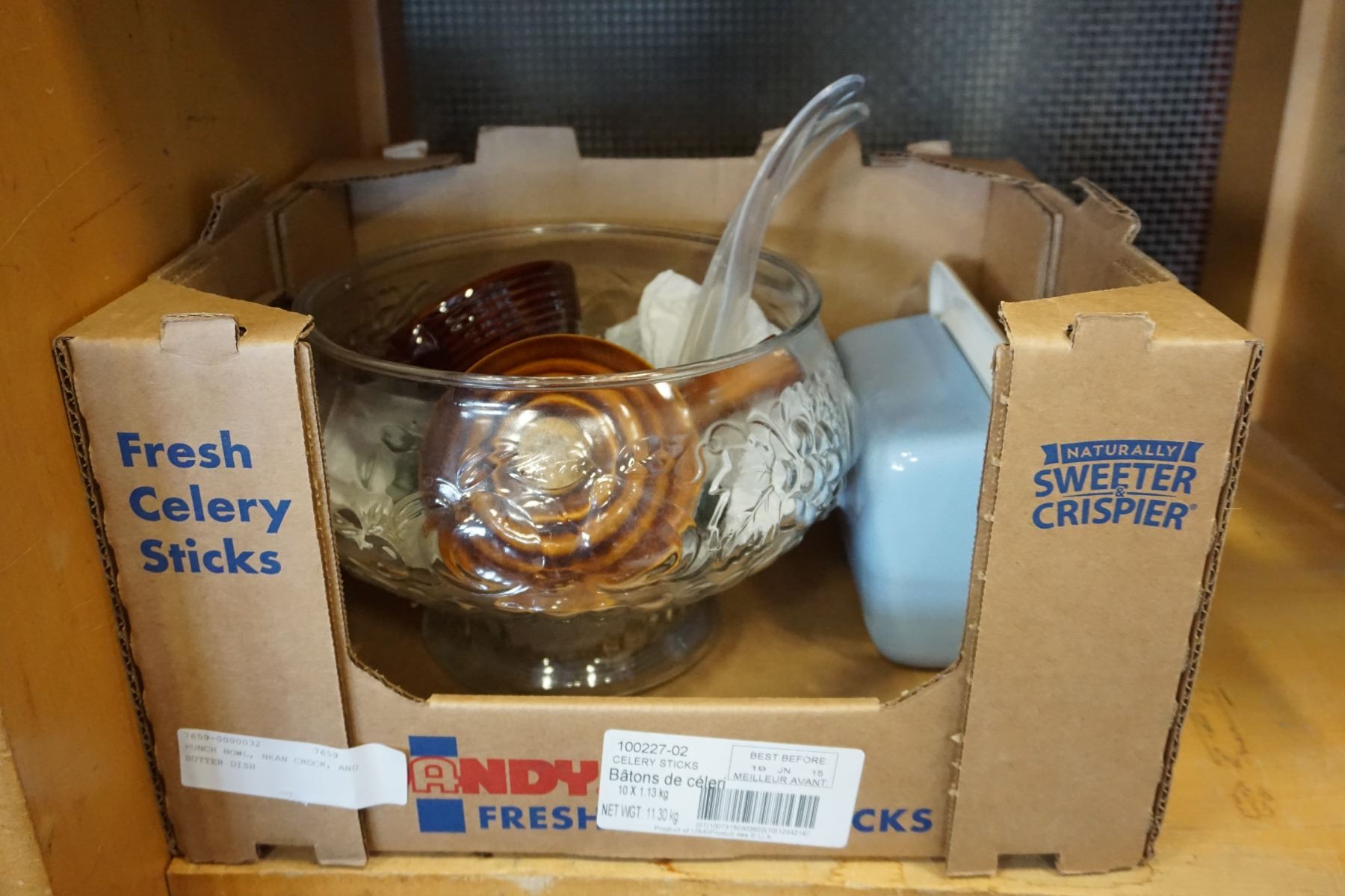 PUNCH BOWL, BEAN CROCK, AND BUTTER DISH