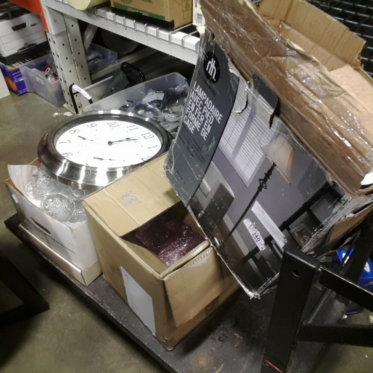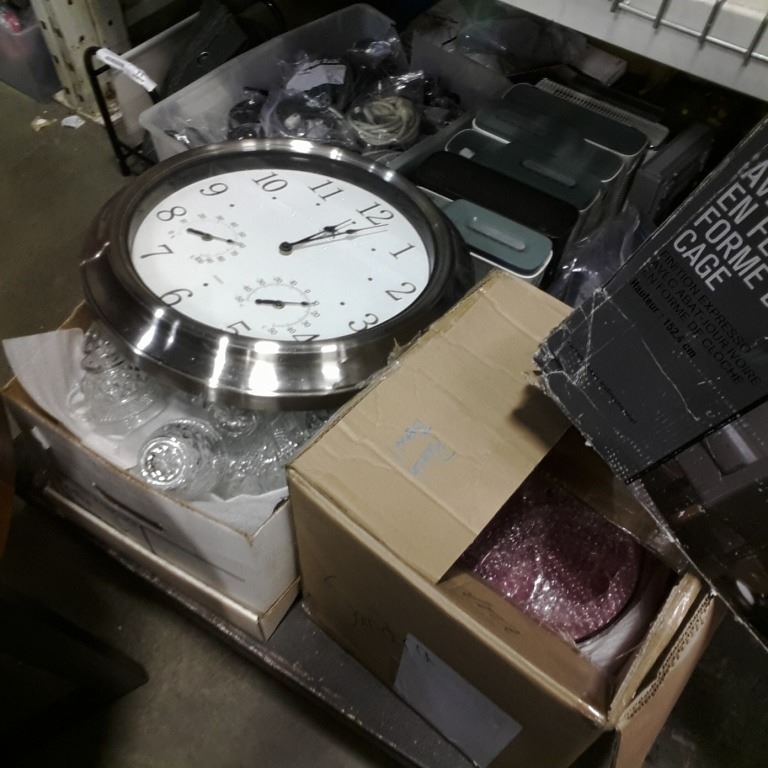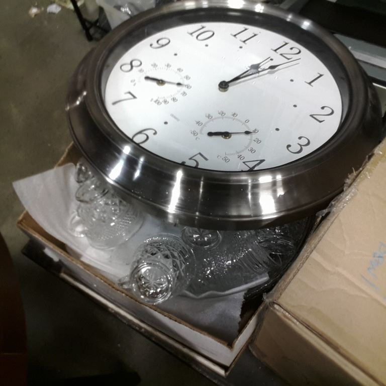 PUNCH BOWL SETS, LARGE CLOCK AND FLOOR LAMP