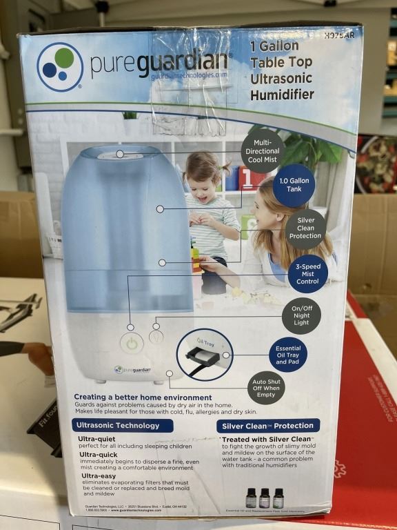 PURE GUARDIAN ULTRASONIC COOL MIST HUMIDIFIER - TESTED WORKING, RETAIL $69