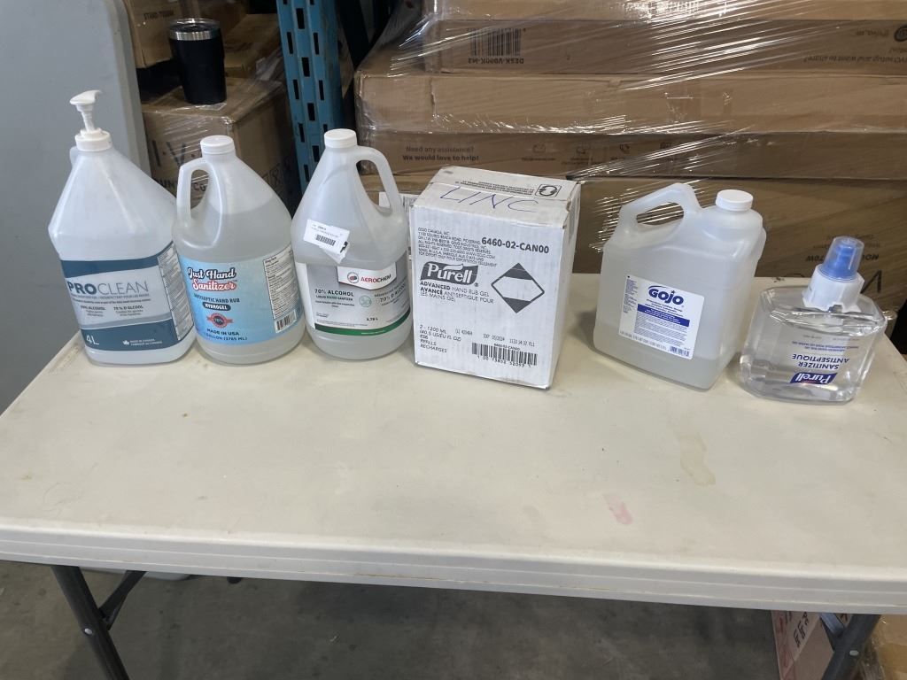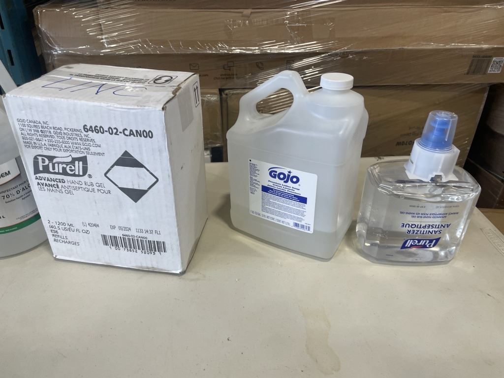 PURELL HAND RUB GEL REFILLS AND 4 BOTTLES AEROCHEM 70% ALCOHOL BOTTLES