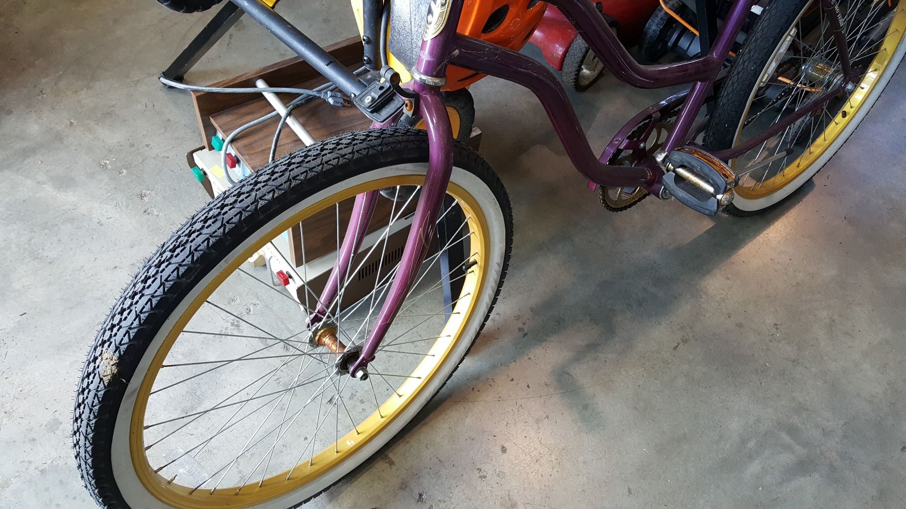 PURPLE NORCO BEACH CRUISER WITH WHITEWALL TIRES