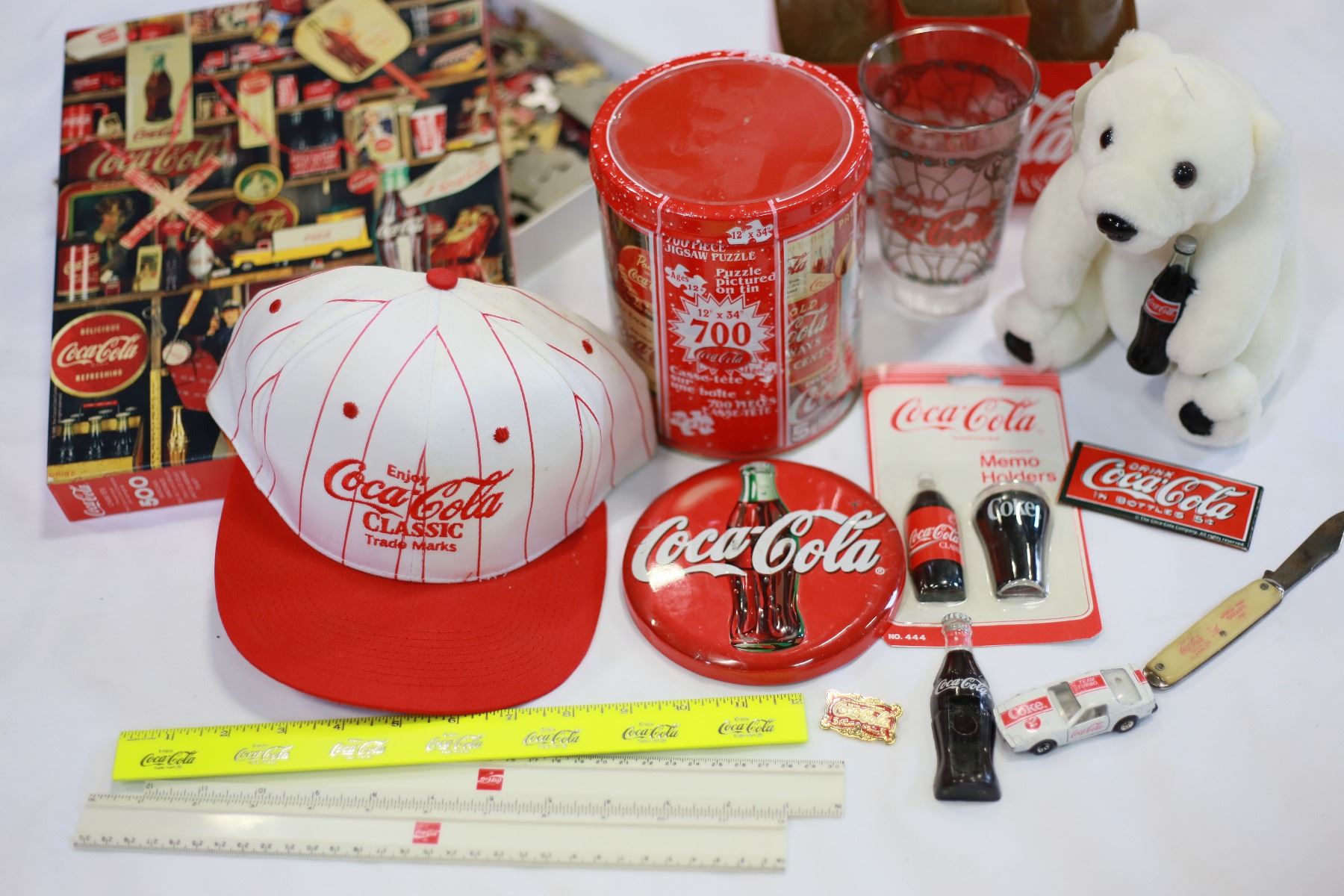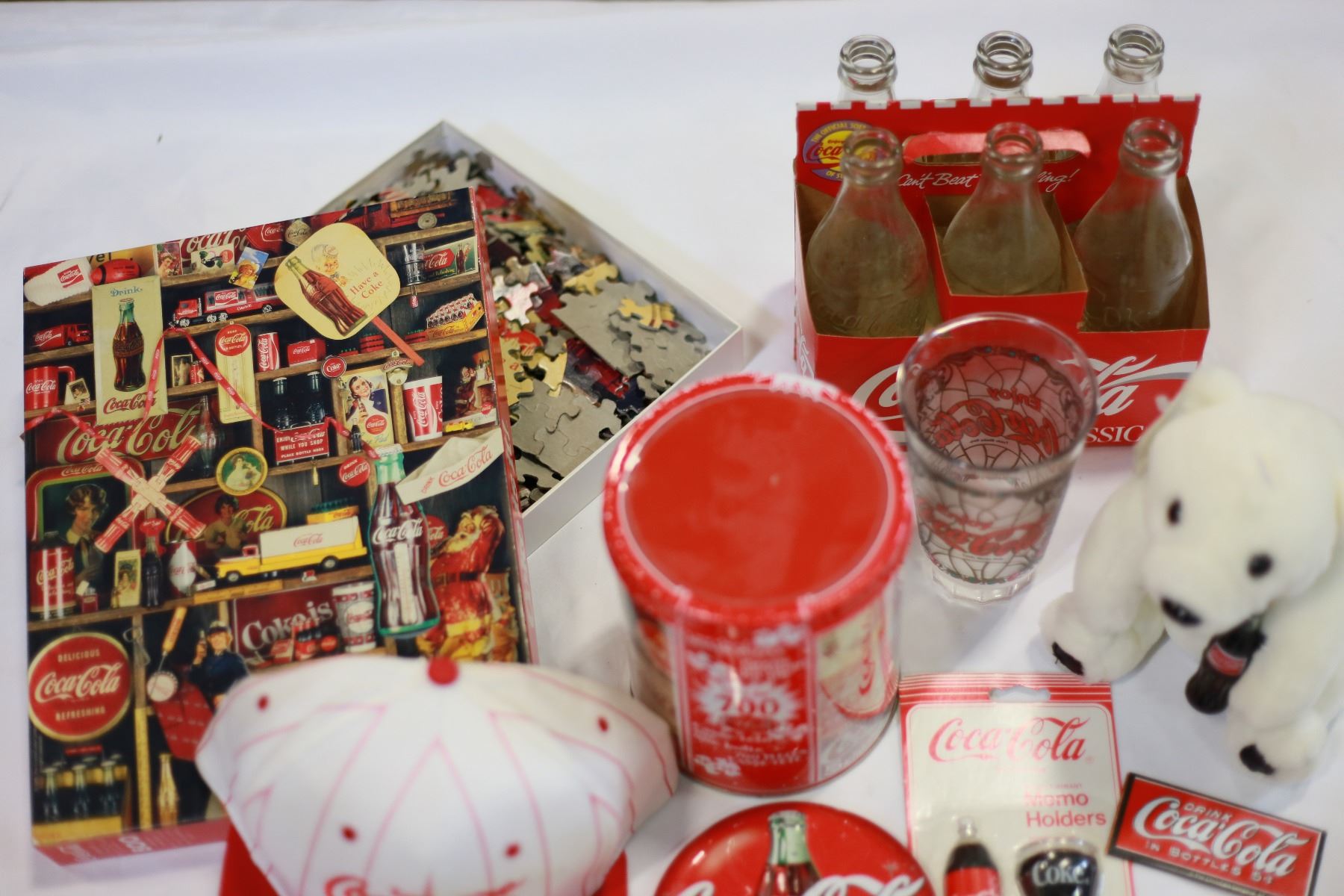 PUZZLE SIX PACK OPENED BOTTLES POLAR BEAR TIN AND BASEBALL HAT MAGNETS TOY CAR PIN AND CUP
