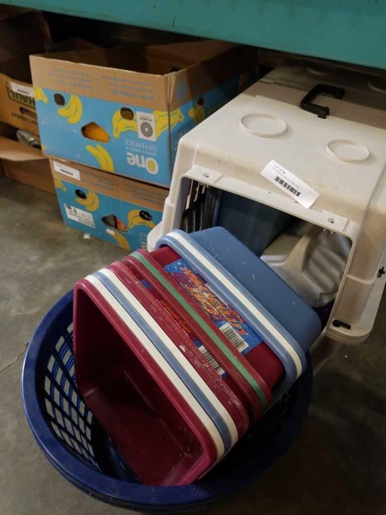 Pet transporter and lot of litter trays with litter