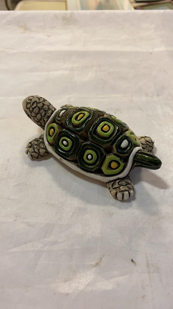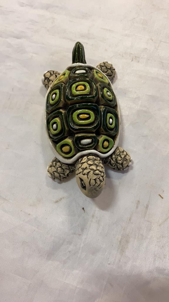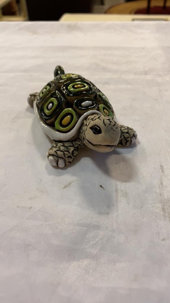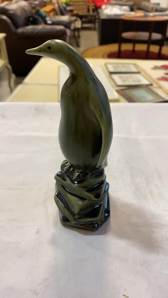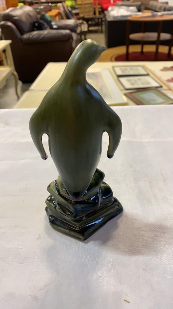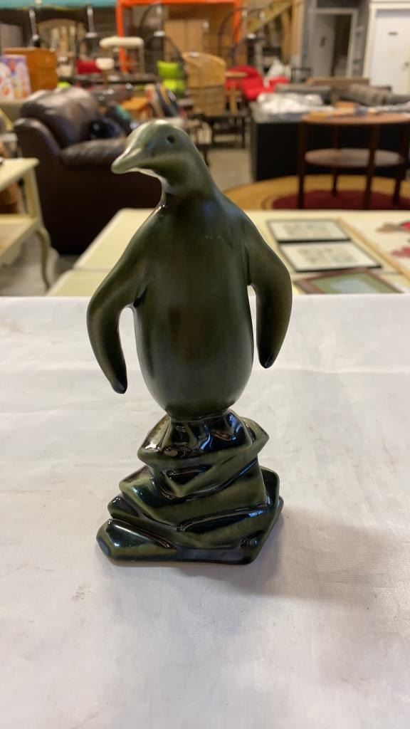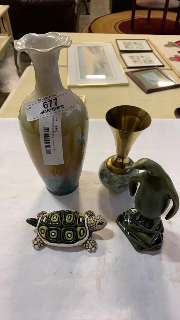 Porcelain turtle, peguin and 2 vases