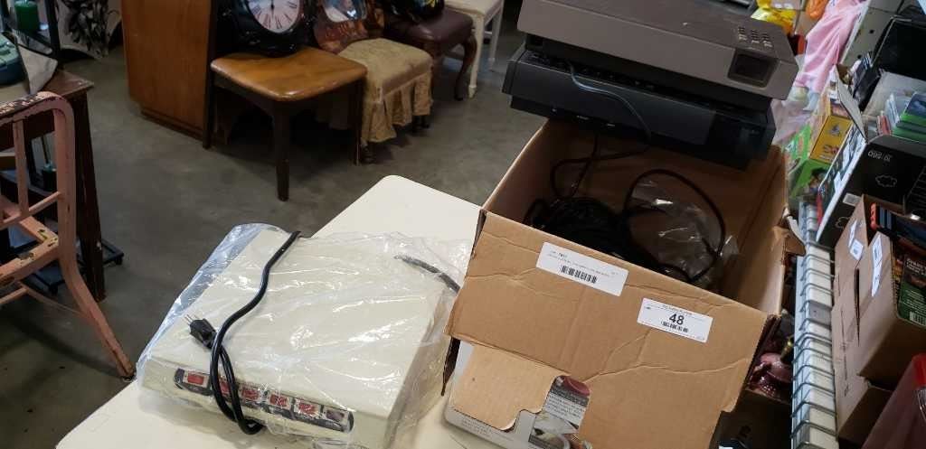 Power distributor, two cable boxes and a box of electronics