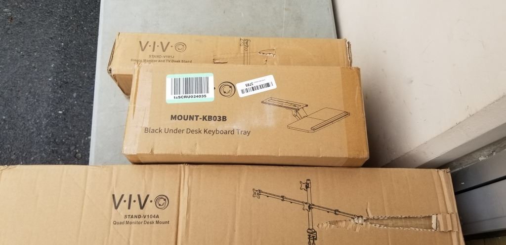 QUAD MONITOR MOUNT, KEYBOARD TRAY AND SINGLE MONITOR STAND