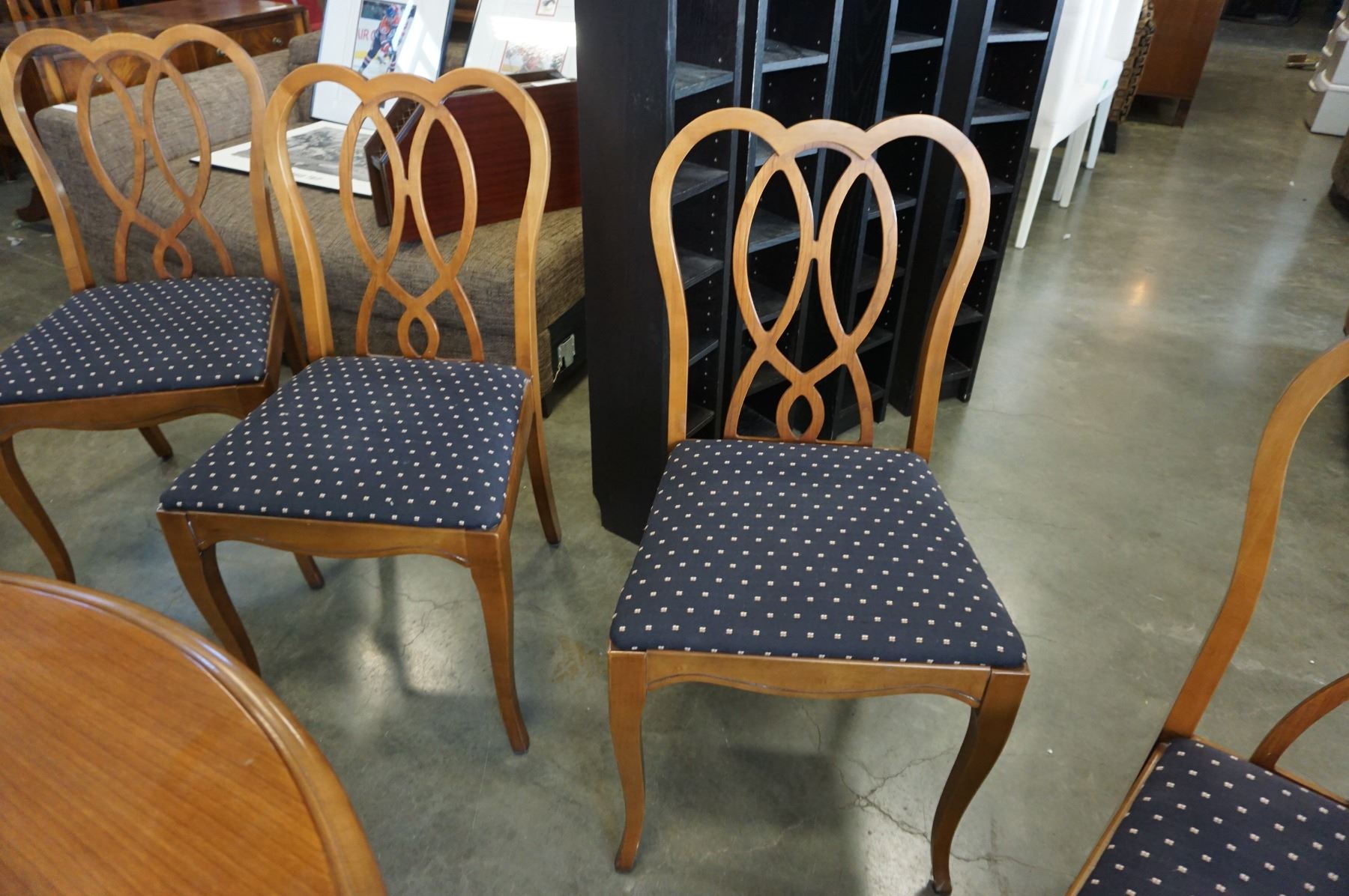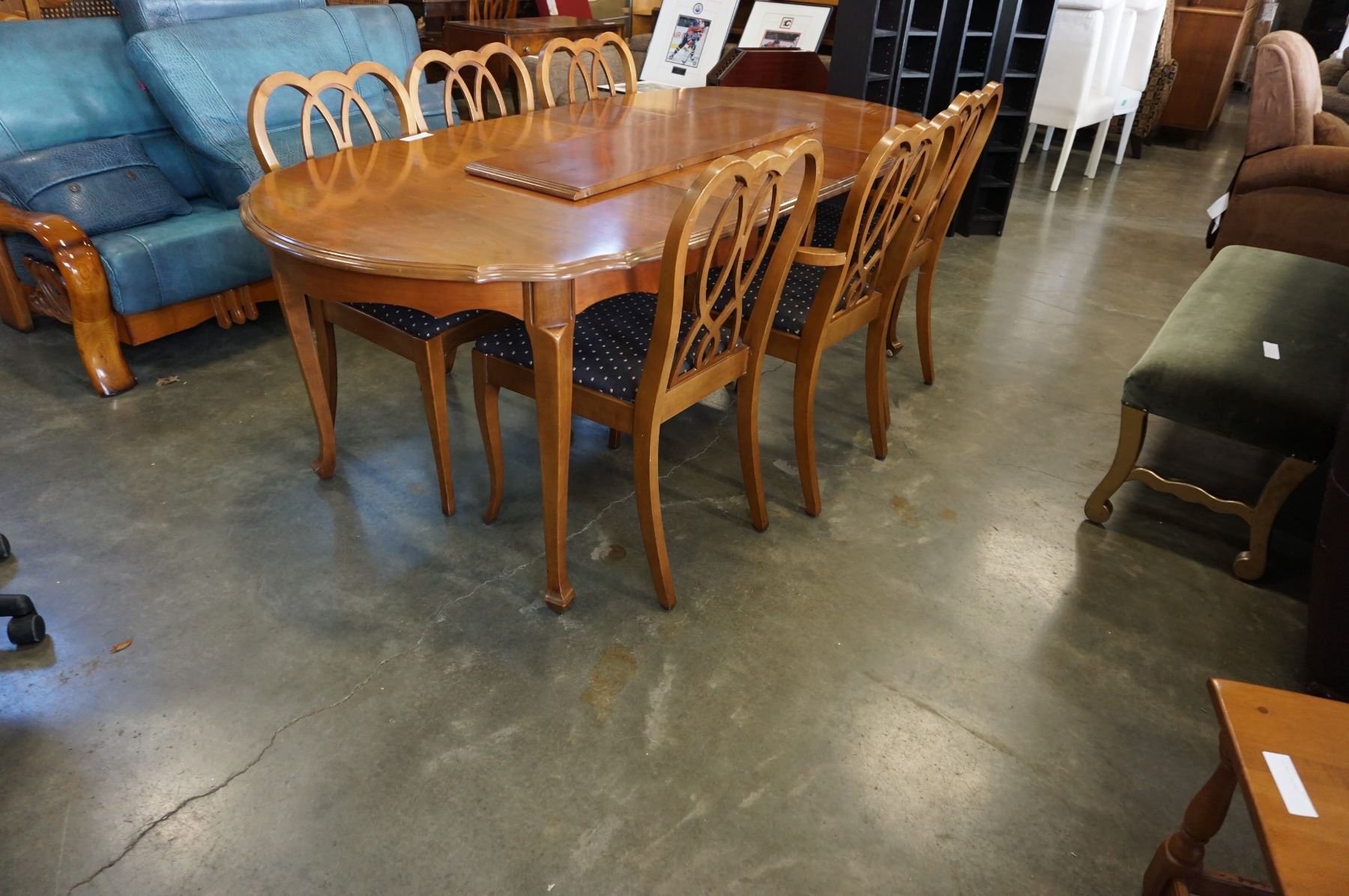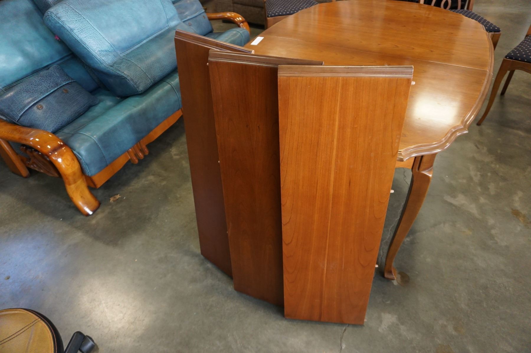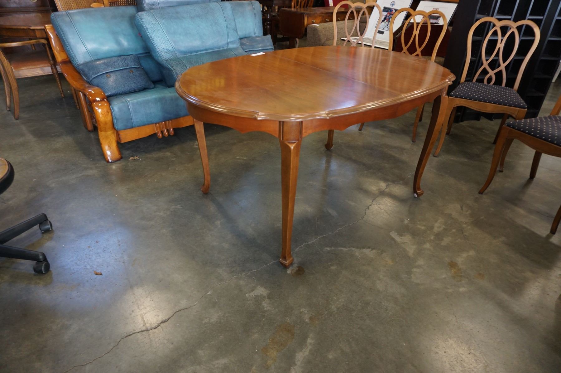 QUEEN ANNE DINING TABLE W/ 3 LEAFS AND 6 FRUITWOOD CHAIRS