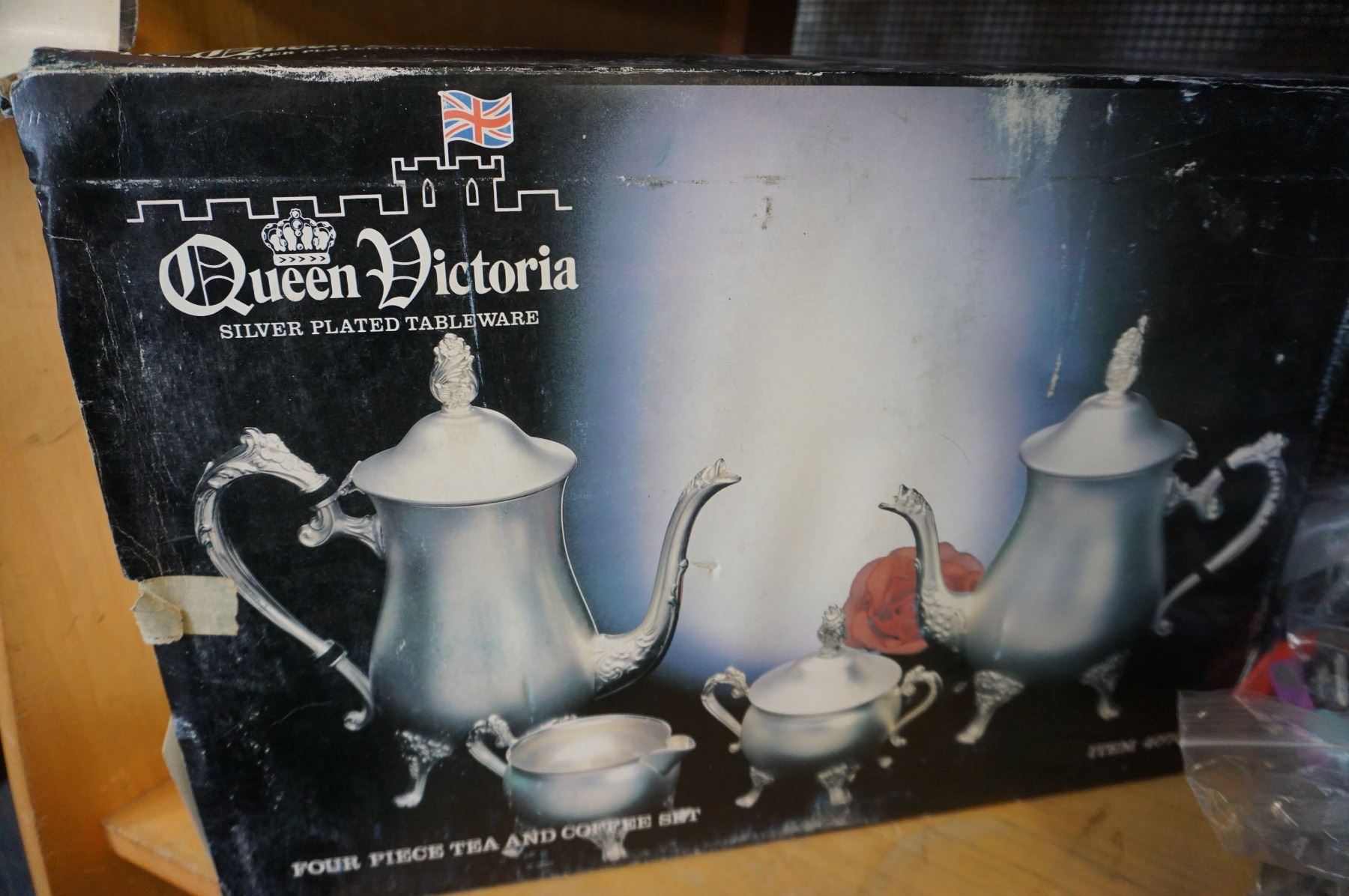 QUEEN VICTORIA SILVER PLATE TEA AND COFFEE SET W/ BOX