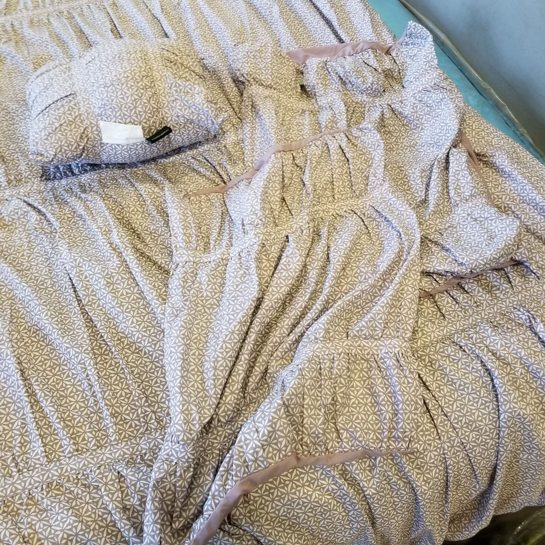 QUEENSIZE CYNTHIA ROWLEY DUVET AND 2 SHAMS, 1 ACCENT PILLOW, USED IN SHOWROOM ONLY