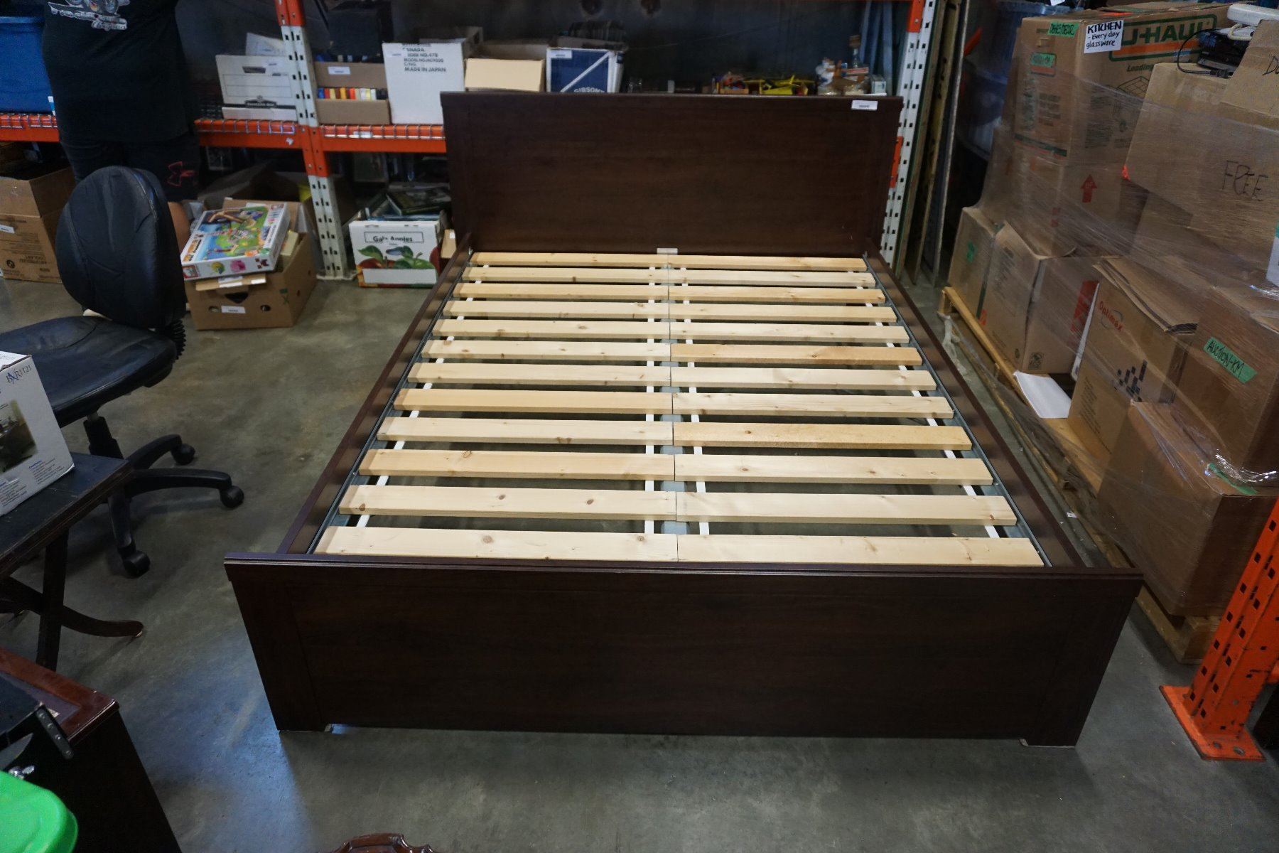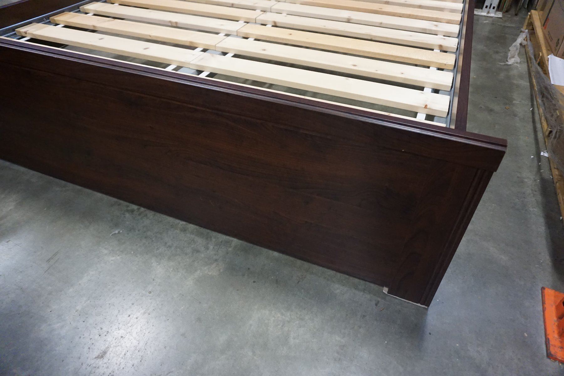 QUEENSIZE ESPRESSO BEDFRAME WITH UNDER BED STORAGE DRAWER