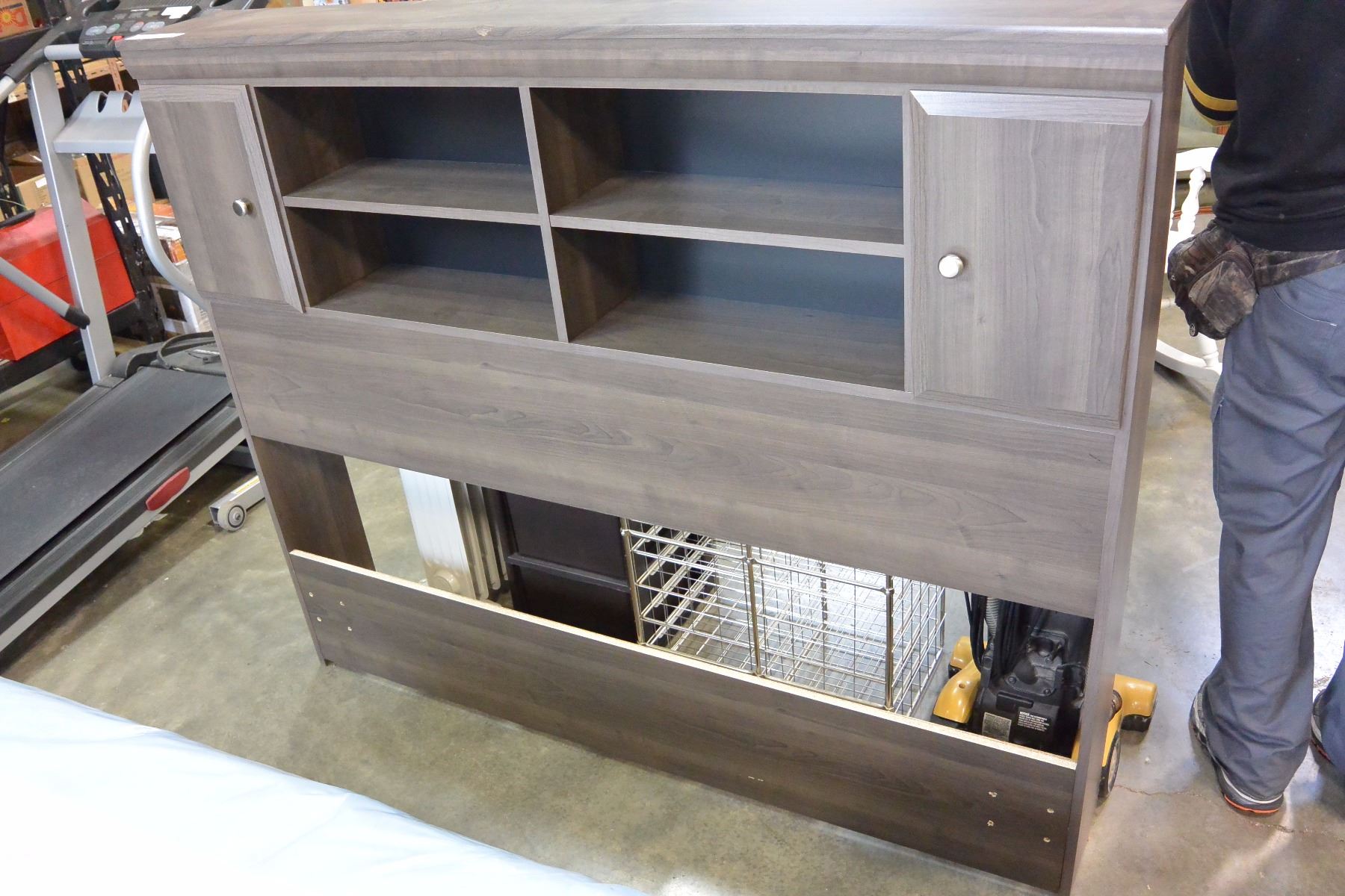 QUEENSIZE MODERN GREY BOOKCASE HEADBOARD SEARS HOME COLLECTION RETAIL $299