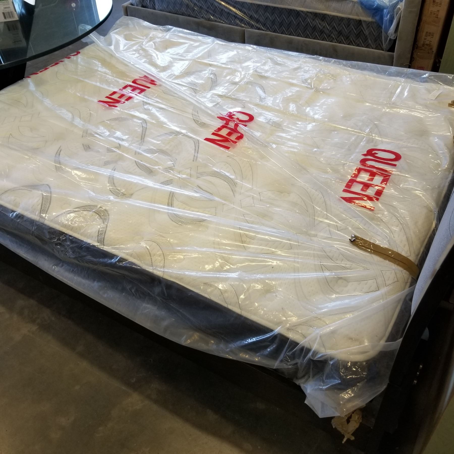 QUEENSIZE SEALY POSTUREPEDIC KERRISDALE FIRM TIGHT TOP MATTRESS, FLOOR MODEL, DIRT SCUFF