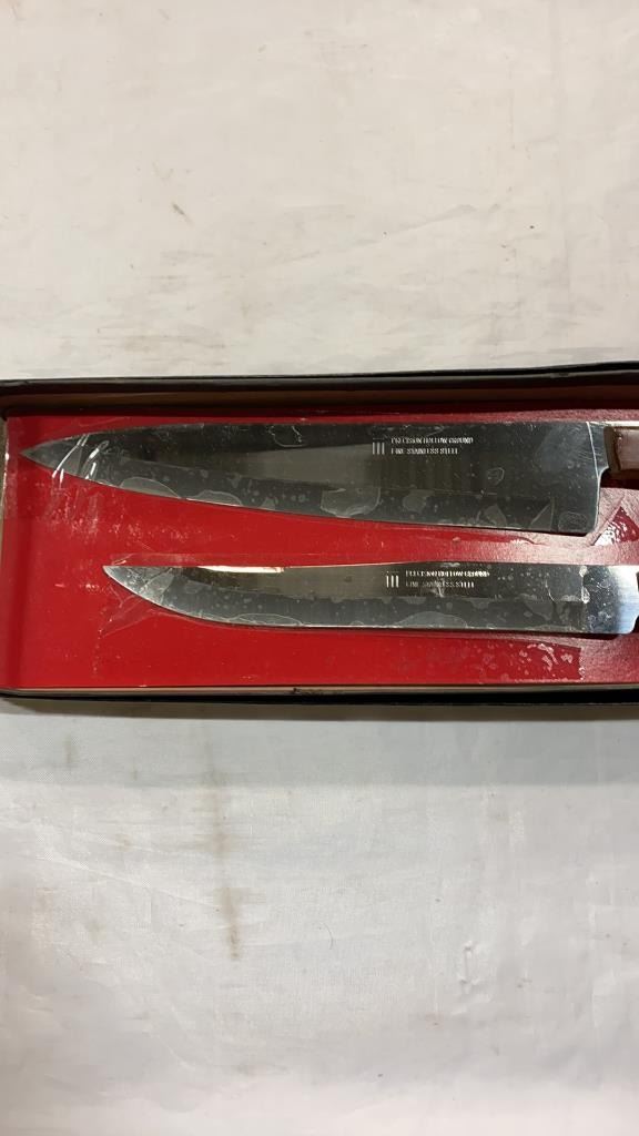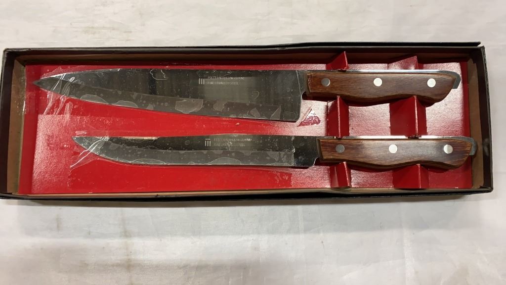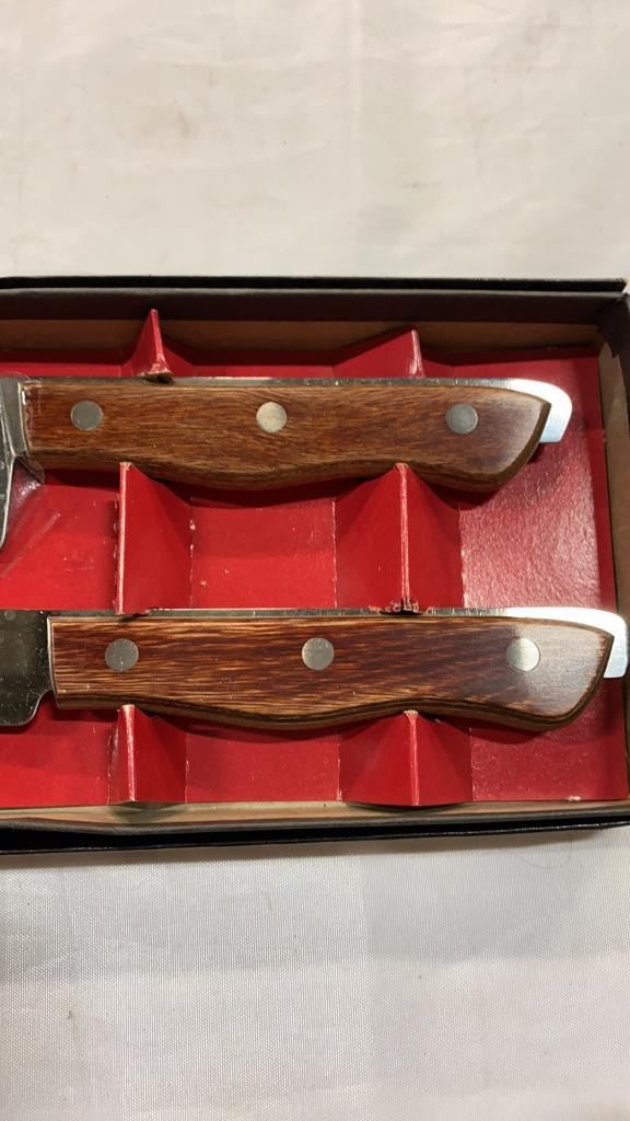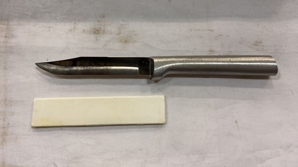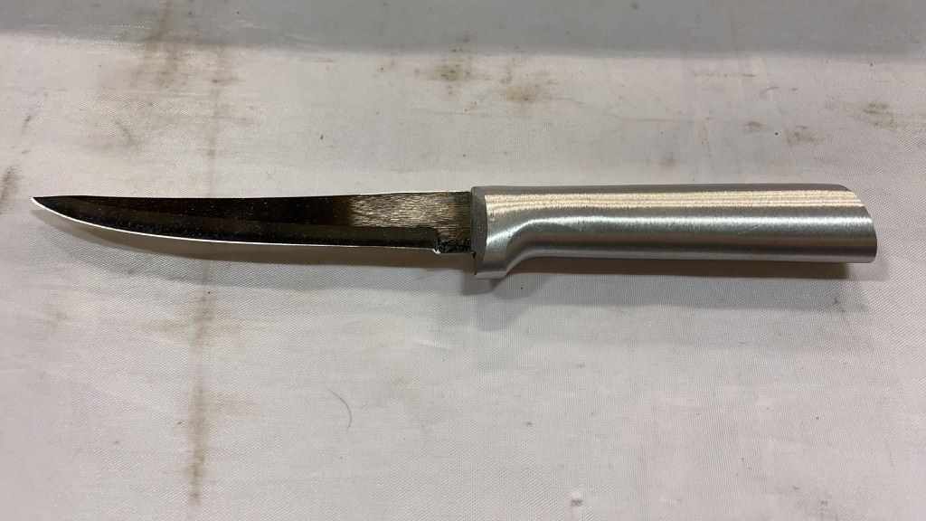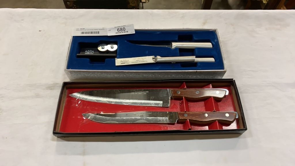 RADA KNIFE SET W/ STEAK KNIFE, PEARING KNIFE, AND SHARPENER, AND 2 PRECISION HOLLOW GROUND STAINLESS STEEL KNIVES