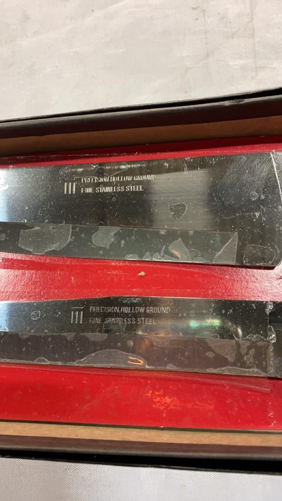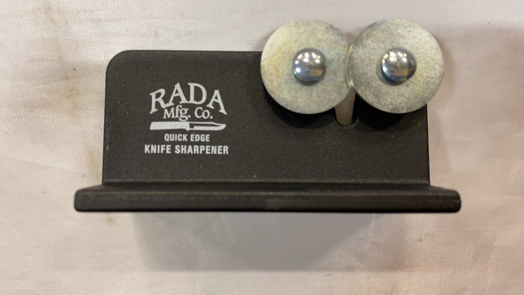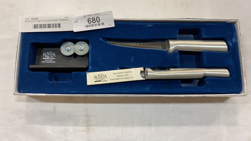 RADA KNIFE SET W/ STEAK KNIFE, PEARING KNIFE, AND SHARPENER, AND 2 PRECISION HOLLOW GROUND STAINLESS