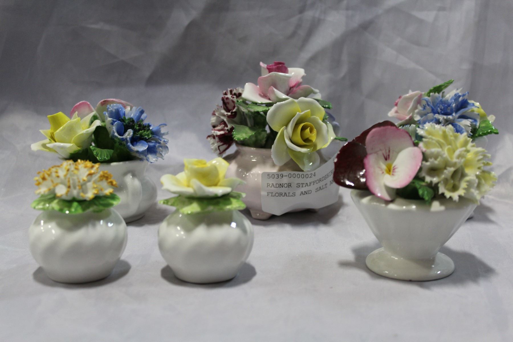 RADNOR STAFFORDSHIRE CHINA FLORALS AND SALT AND PEPPER