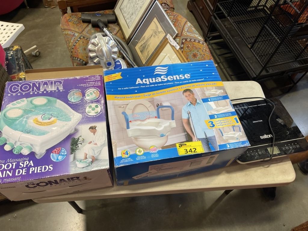 RAISED TOILET SEAT, FOOTBATH AND SALTON HOT PLATE