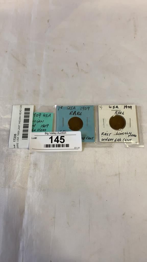 RARE USA 1909 LAST INDIAN HEAD CENT 1909 AND FIRST LINCOLN HEAD WHEAT CENT 1909