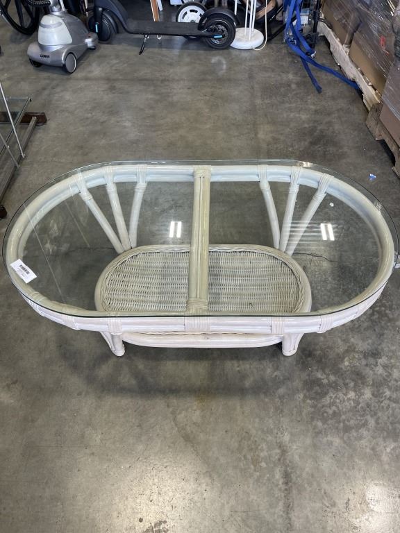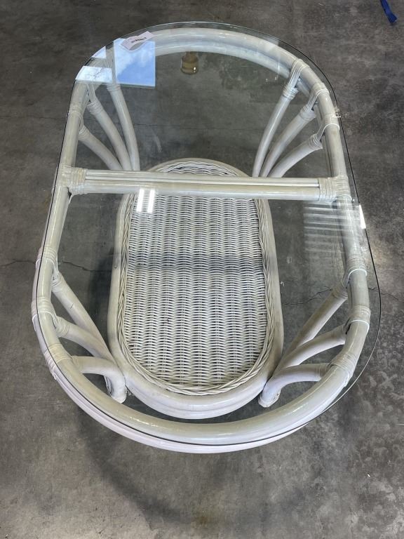 RATTAN GLASS TOP COFFEE TABLE