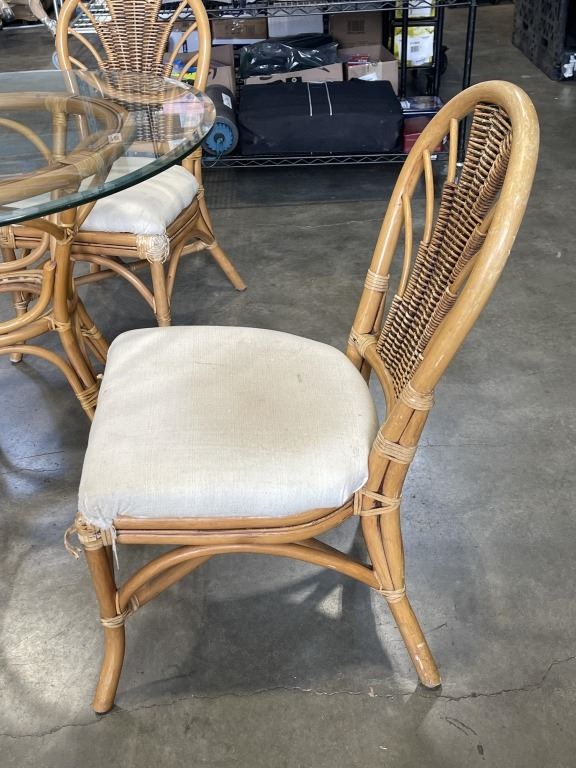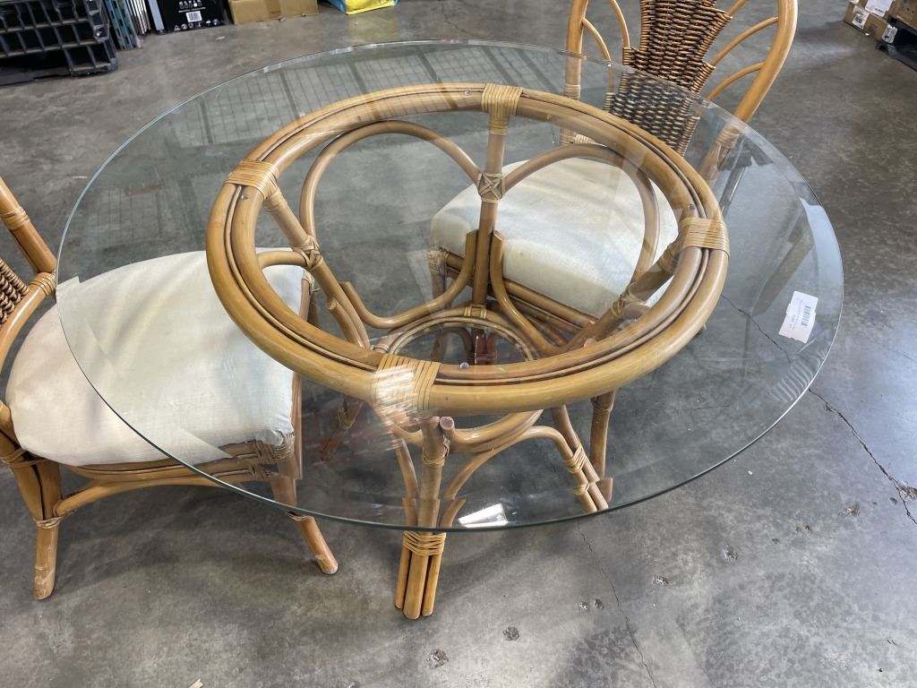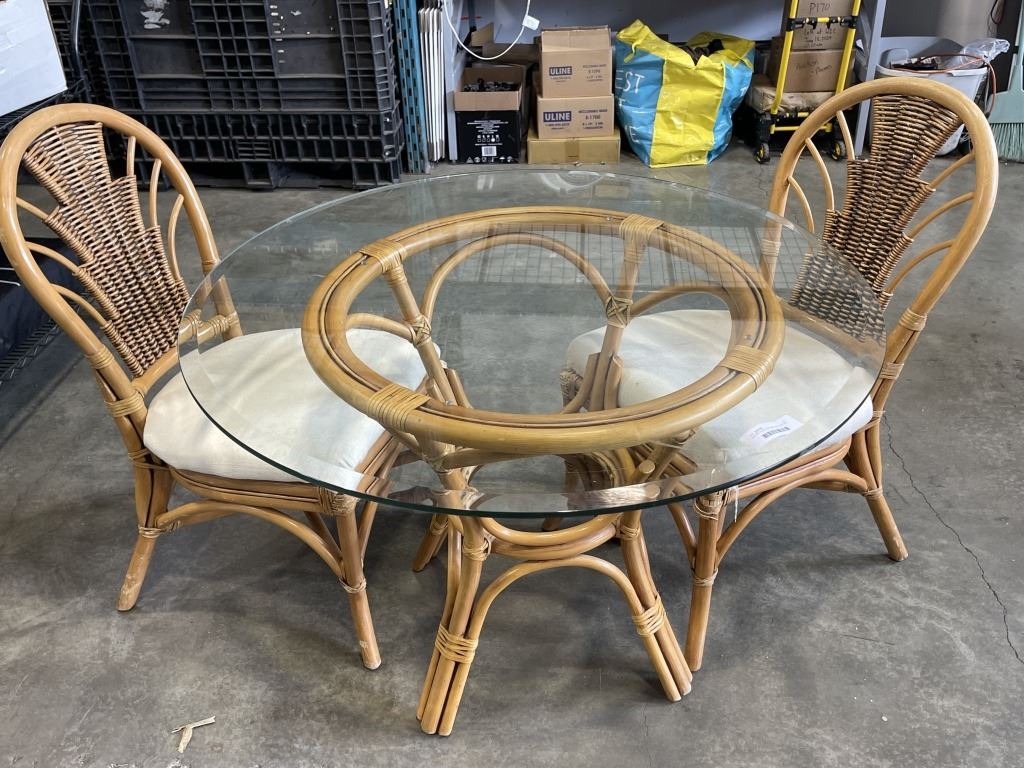 RATTAN GLASS TOP TABLE WITH 2 CHAIRS