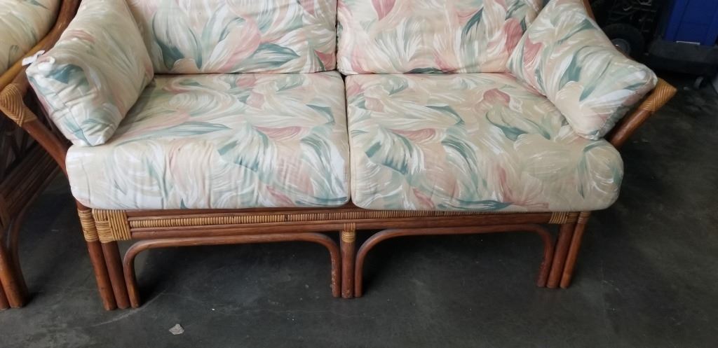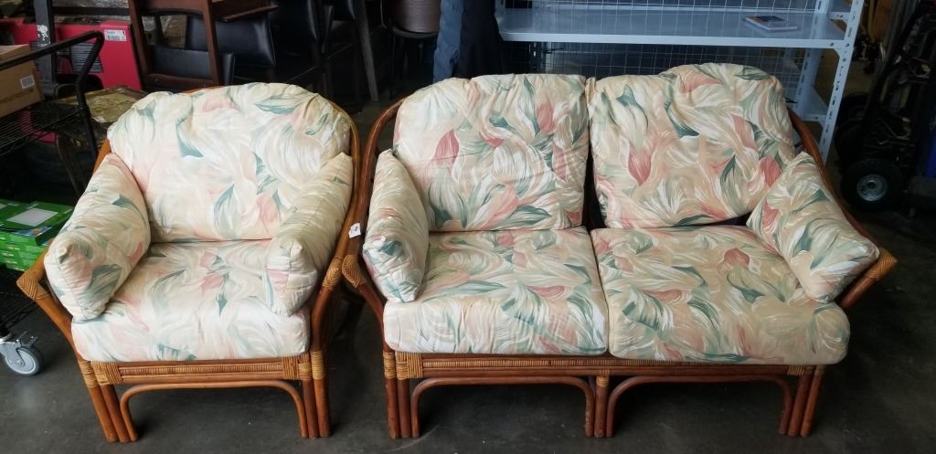 RATTAN LOVESEAT AND CHAIR