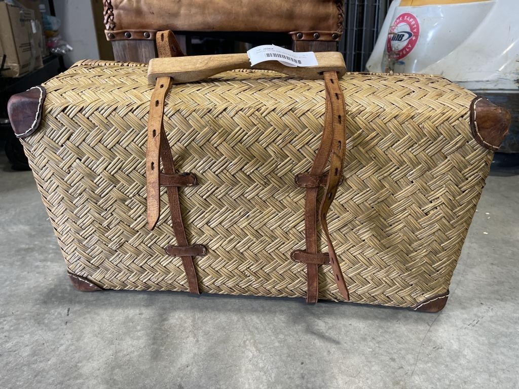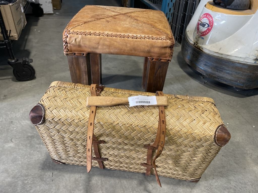 RATTAN TRUNK AND LEATHER FOOT STOOL